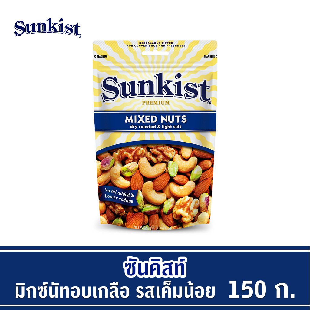 ซันคิสท์ มิกซ์นัทอบเกลือ รสเค็มน้อย 150 ก. Sunkist Dry roasted & Light salt Mixed Nuts 150 g.