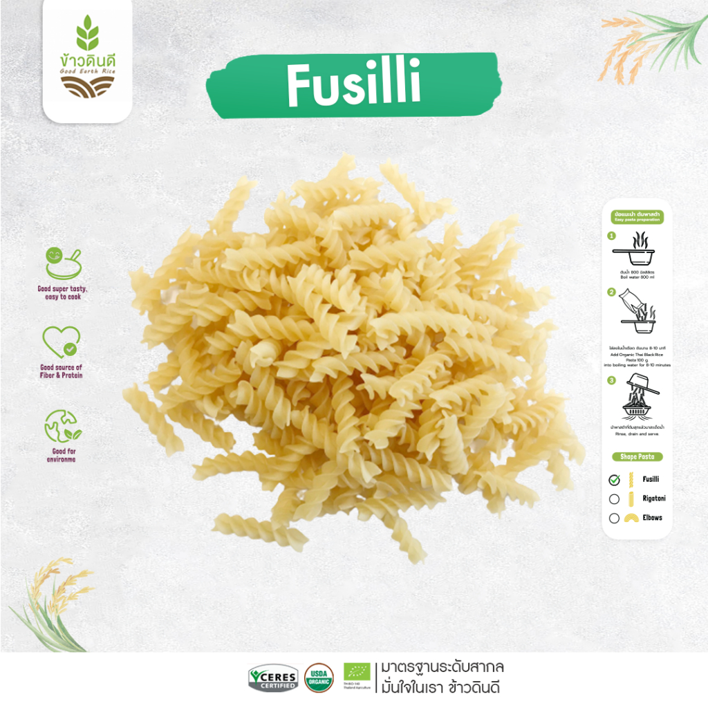 พาสต้าข้าวดินดี พาสต้าถั่วลูกไก่ Organic Chickpea Fusilli Pasta #Gluten Free# 250g./กล่อง