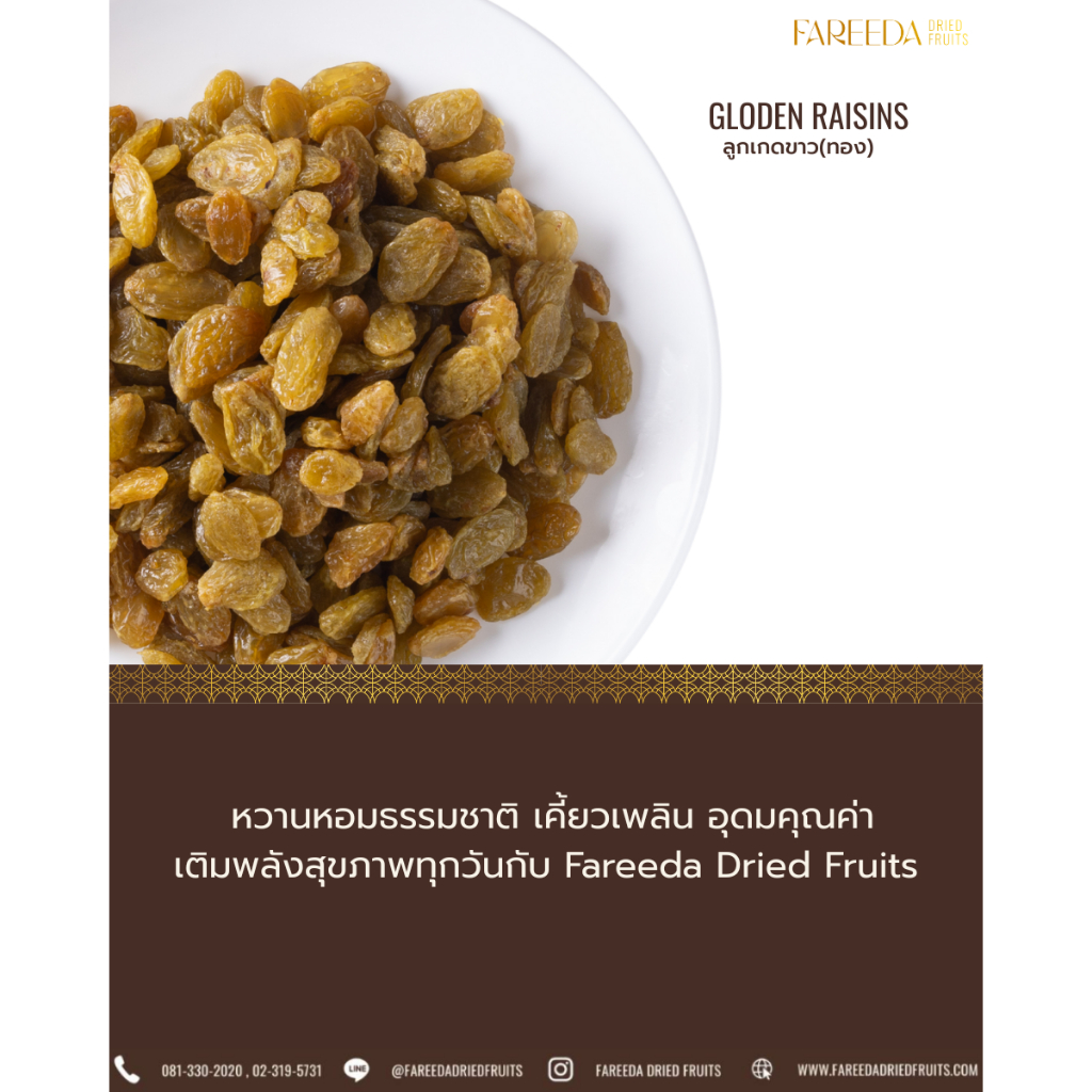 ลูกเกดขาว Fareeda เนื้อนุ่มหนึบ รสหวานอมเปรี้ยวนิดๆ หอมกลิ่นลูกเกด