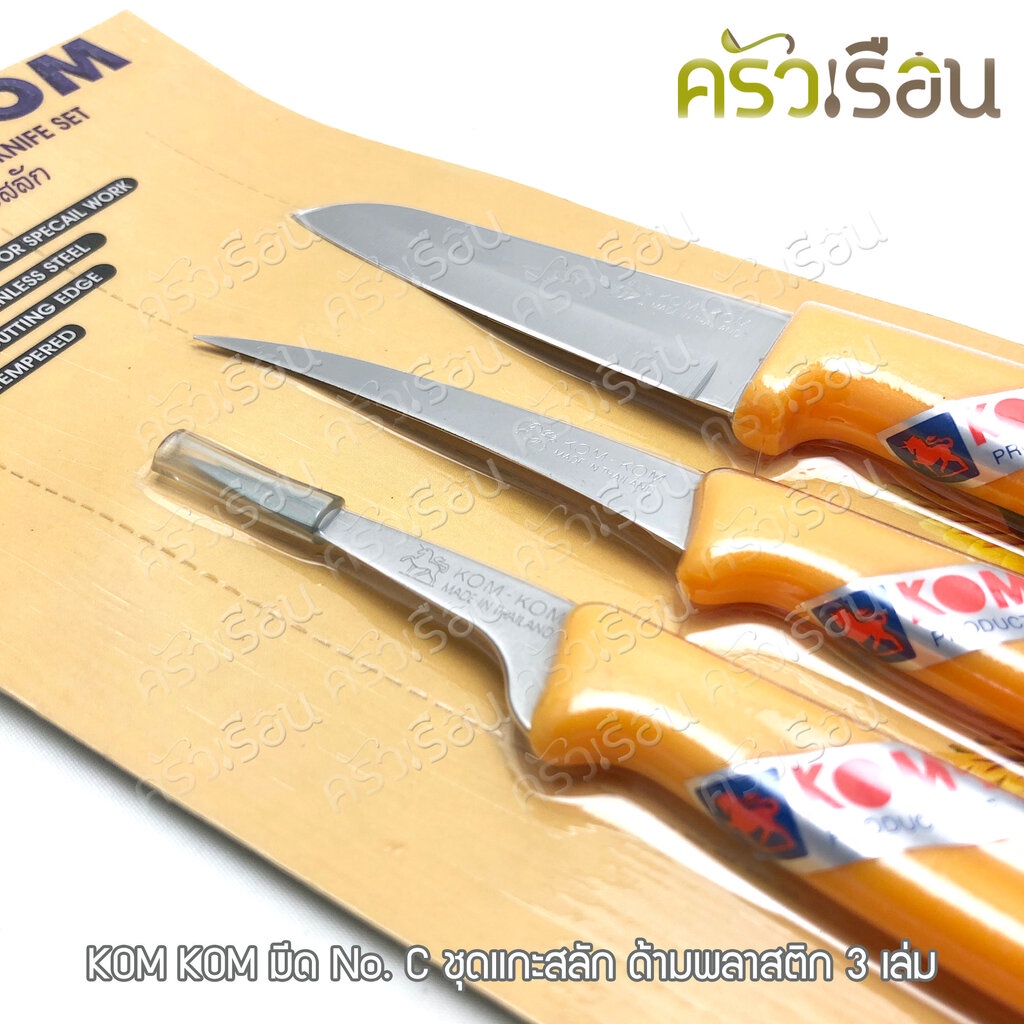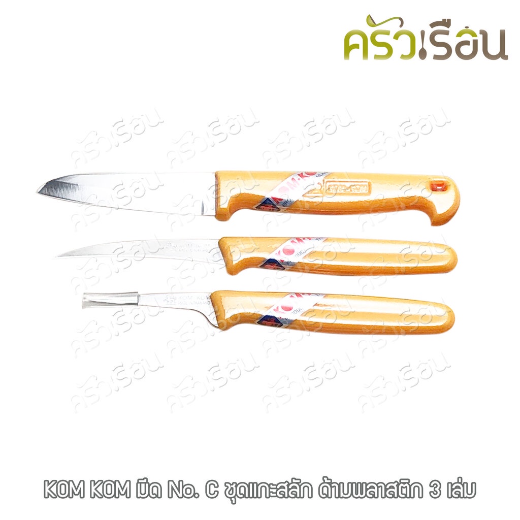 KOM KOM มีด No. C ชุดแกะสลัก ด้ามพลาสติก 3 เล่ม ตราคมคม อุปกรณ์แกะสลักผลไม้