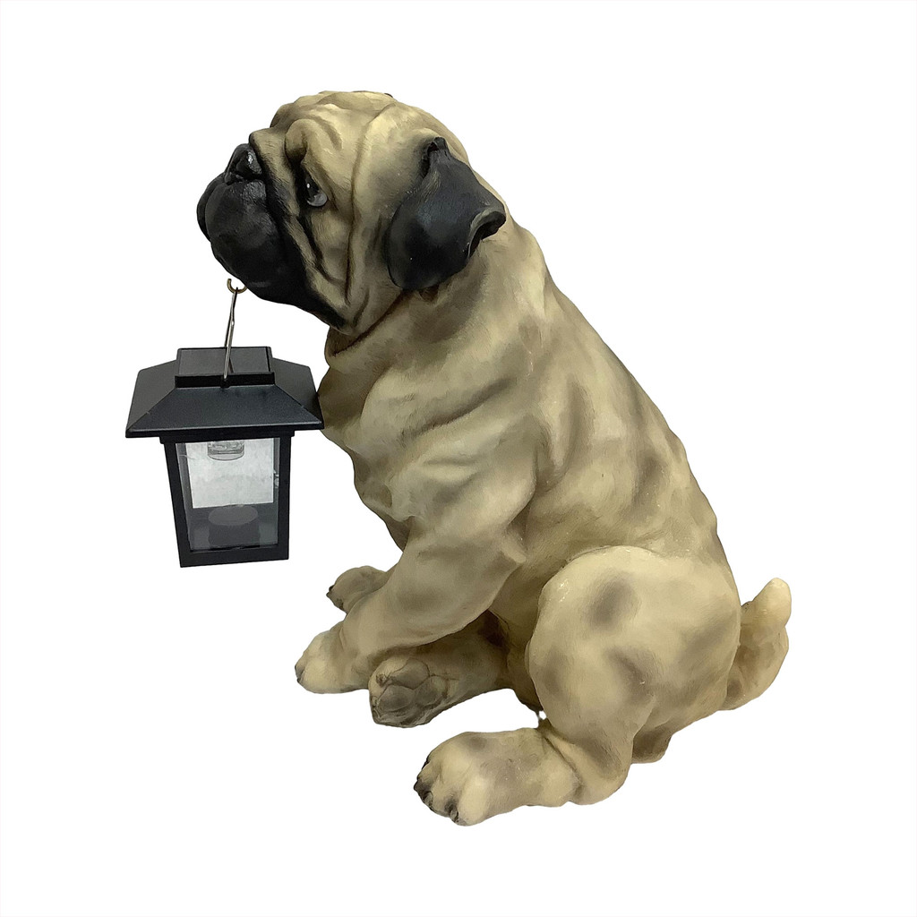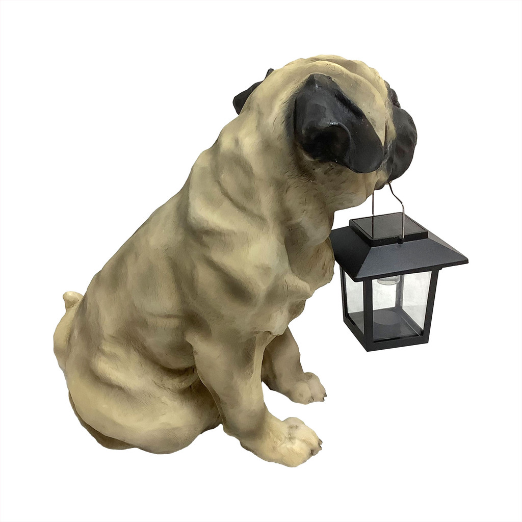 FONTE รูปปั้นแต่งสวนสุนัขปั๊กคาบไฟโซลาร์เซลล์ รุ่น DD240588