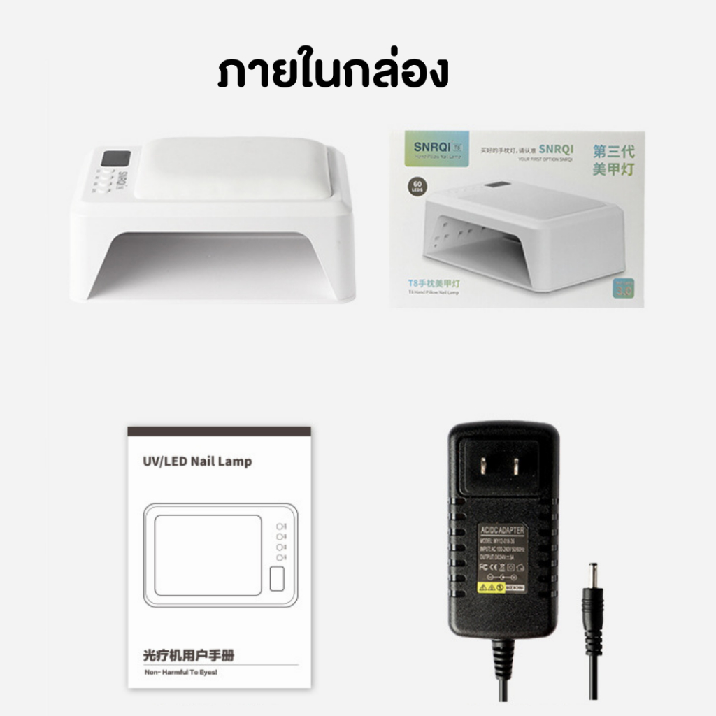SNRQI เครื่องอบเล็บเจล ที่อบเล็บ T8-A ไฟ UV/LED 60 ดวง กำลังไฟ 72W เป็นที่รองมือทำเล็บได้ด้วย แถบฟ้าเขียว