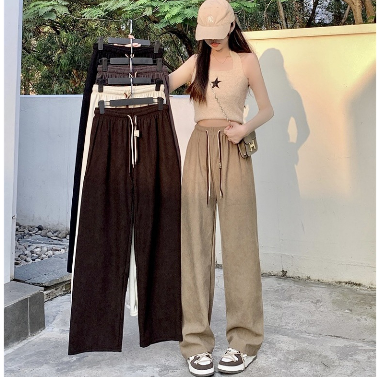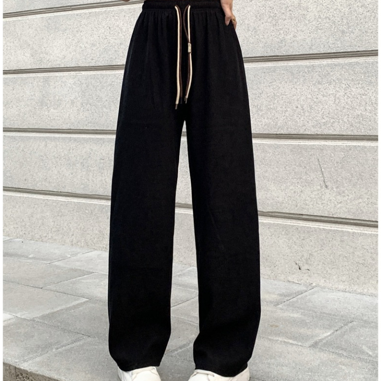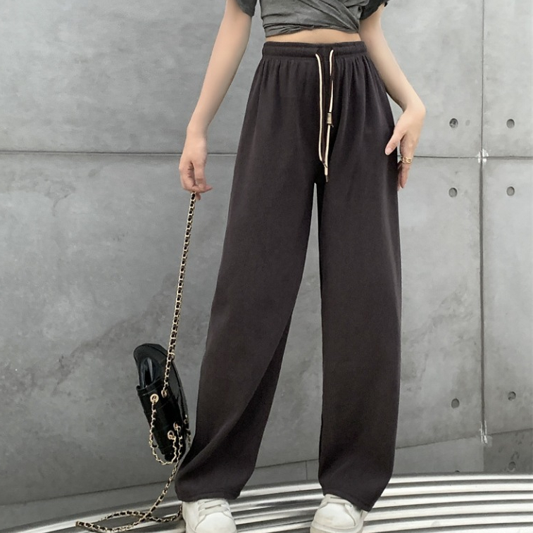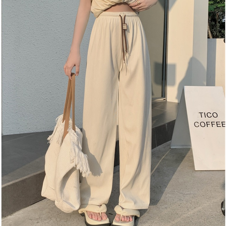 พร้อมส่งในไทย**กางเกงขายาวเอวสูง เอวยางยืด ขายาว ผ้าลูกฟูกหนานุ่ม K50