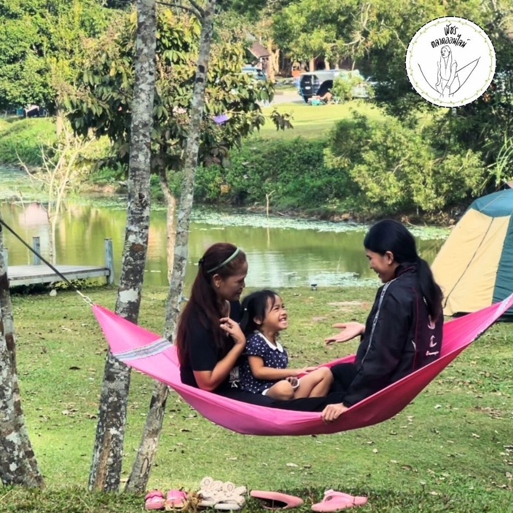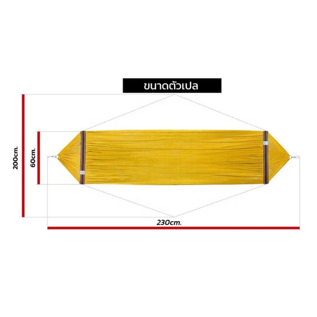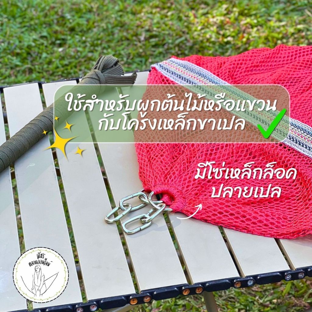 [ฟรีเชือก 6 เมตร] เปลญวนผู้ใหญ่ มีโซ่แขวนกับโครงเหล็ก ขนาดใหญ่พิเศษ 230x60 cm Jumbo ผ้าสองชั้น