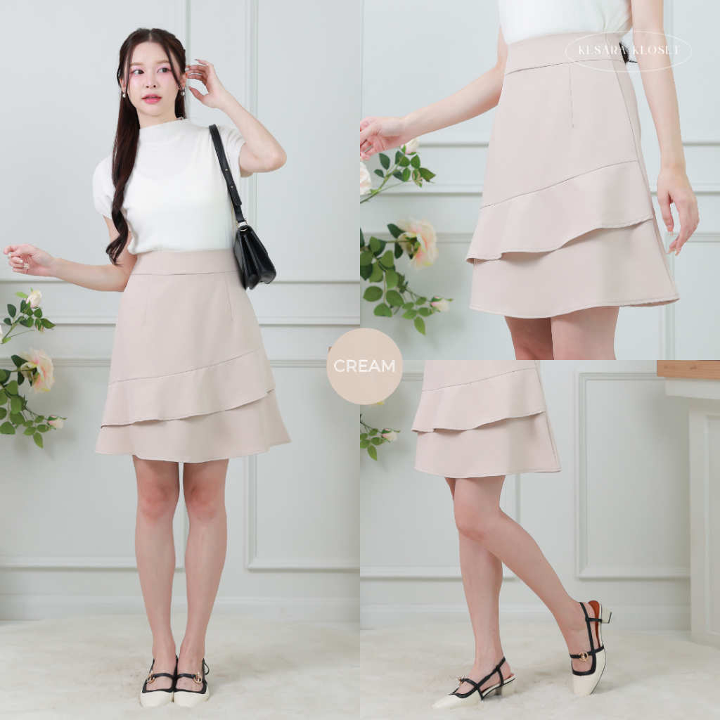 กระโปรงทำงานเอวสูง ทรงระบาย 2 ชั้น ยาว19' Aster Skirt