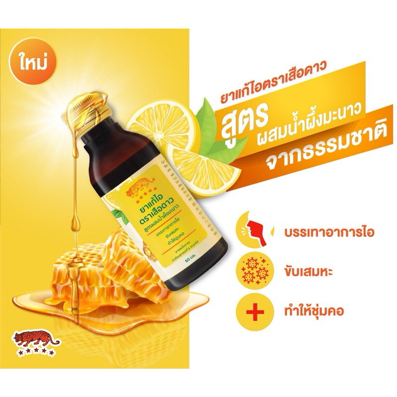 (ขวด)ยาแก้ไอ ตราเสือดาว รสน้ำผึ้งผสมมะนาว