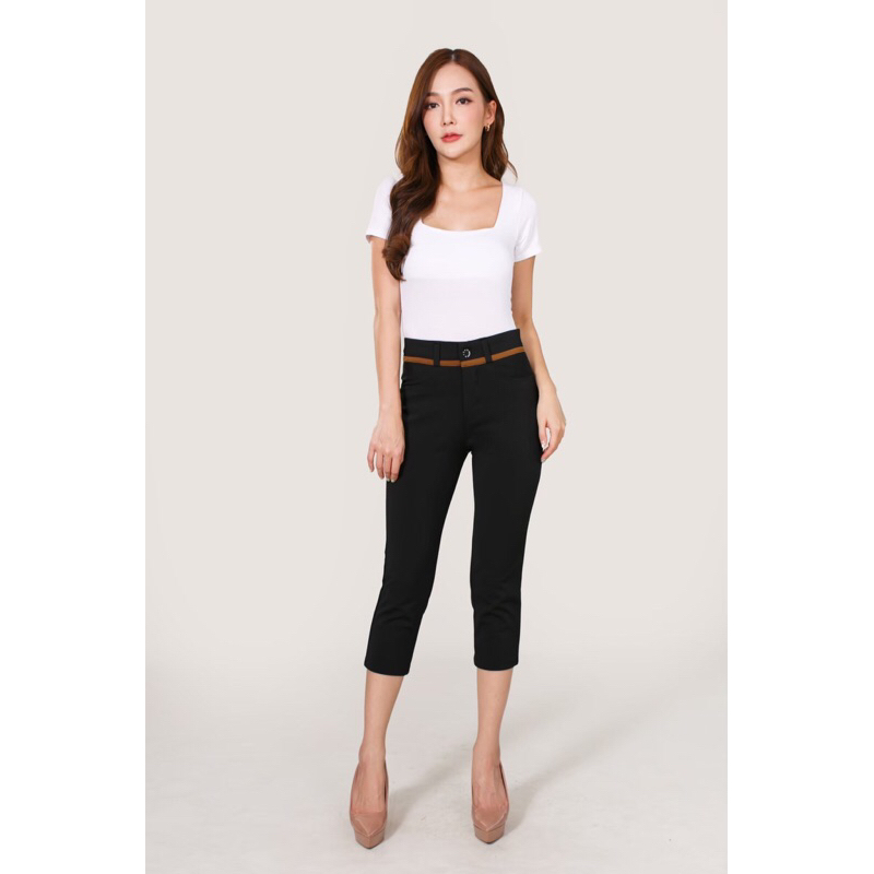 กางเกง 5 ส่วน ขอบทอง ผ้าโรเชฟ เกรดดีมากก เอวติดสะดือ ผ้าไม่เป็นขน ใส่สบายมาก (ไซส์ S-5XL)