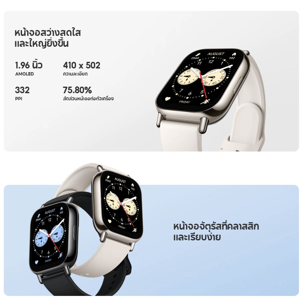 [NEW] Xiaomi Redmi Watch 5 Lite สมาร์ทวอทช์ ตรวจวัดอัตราการเต้นหัวใจทั้งวัน หน้าจอ AMOLED 1.96" การใช้งานได้นาน 18 วัน