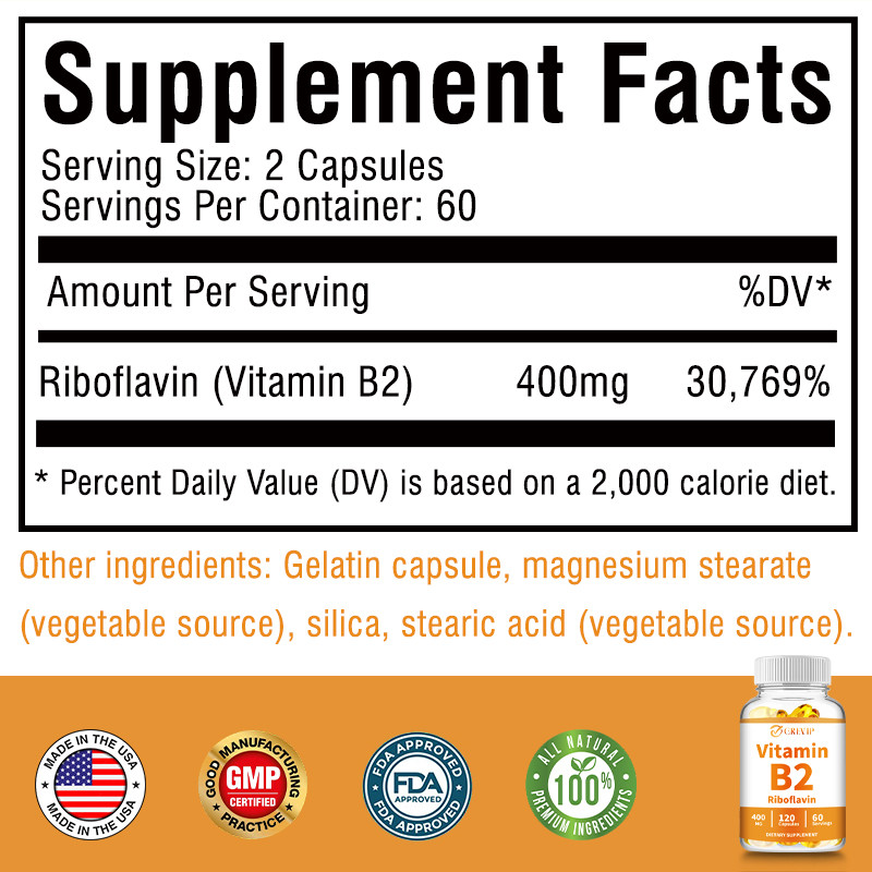 รีวีไอพี วิตามิน ข2 400 มก. แคปซูล ผลิตภัณฑ์เสริมอาหาร (30/60/120 แคปซูล)