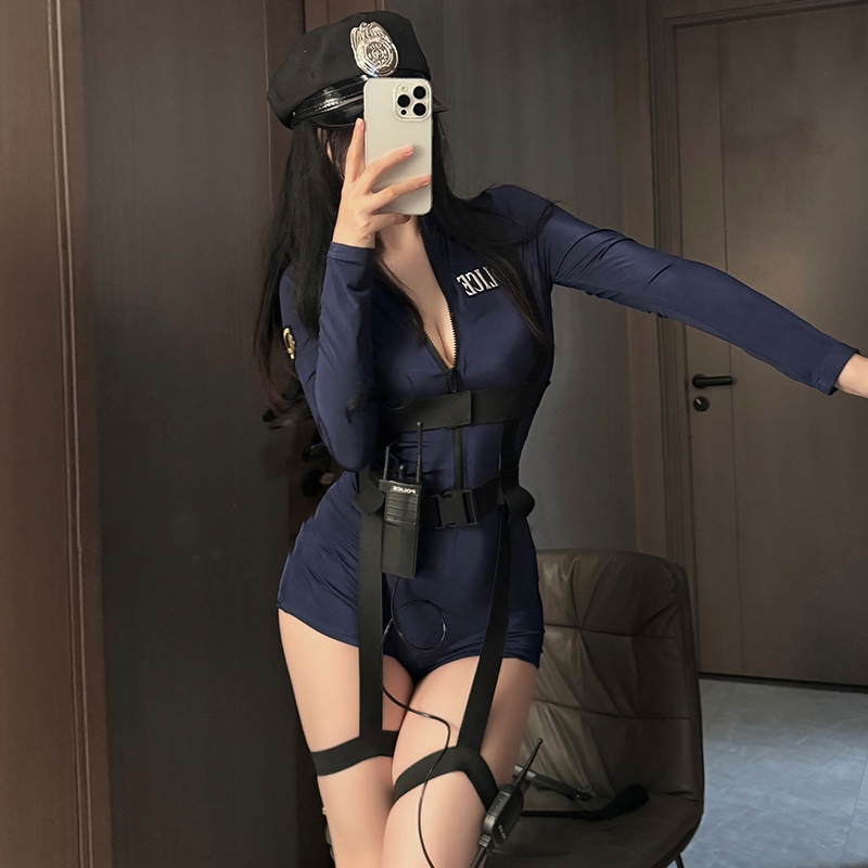Sexy Girl ชุดคอสเพลย์ ตำรวจหญิงสุดเซ็กซี่ การออกแบบซิป ง่ายต่อการถอดเสื้อผ้า H9528