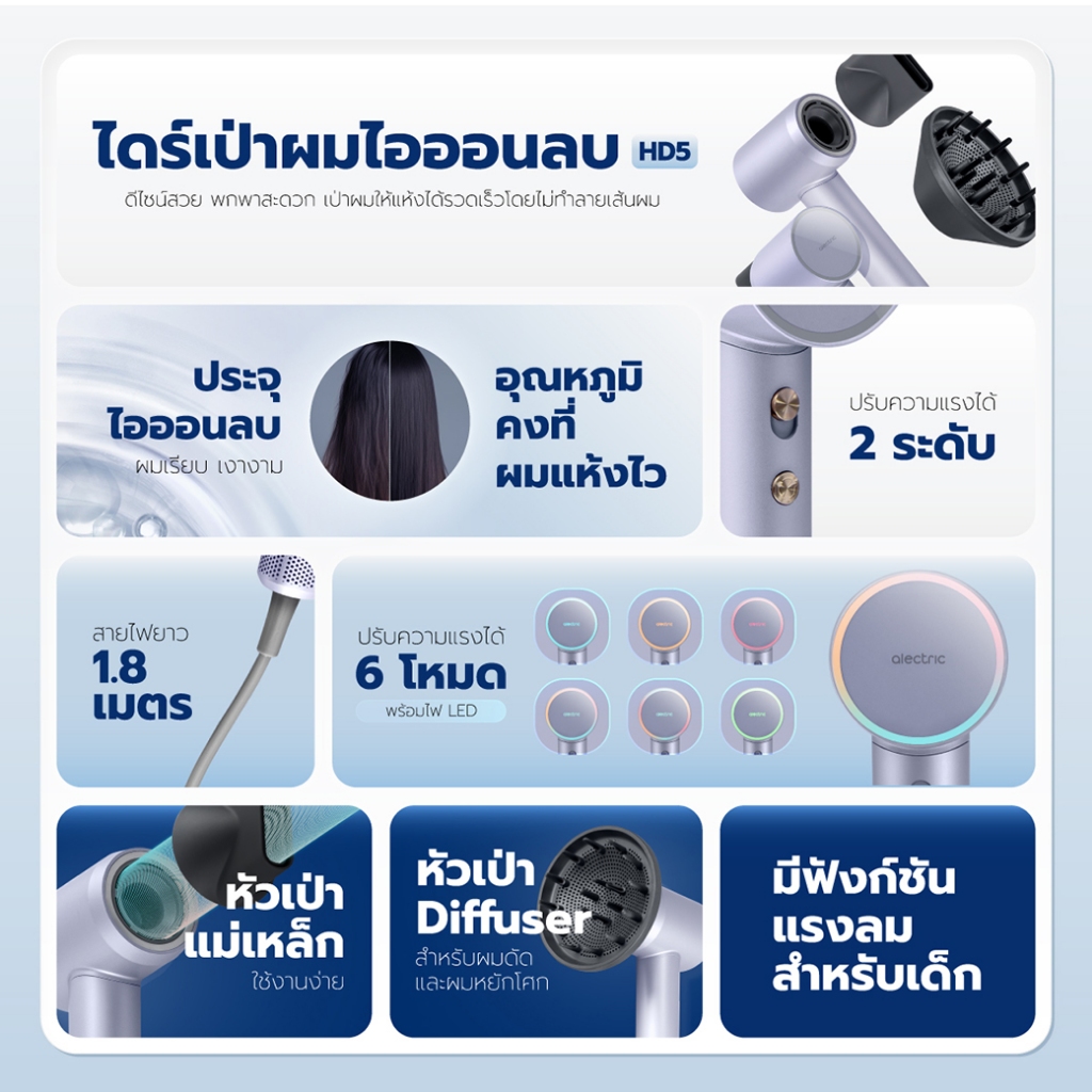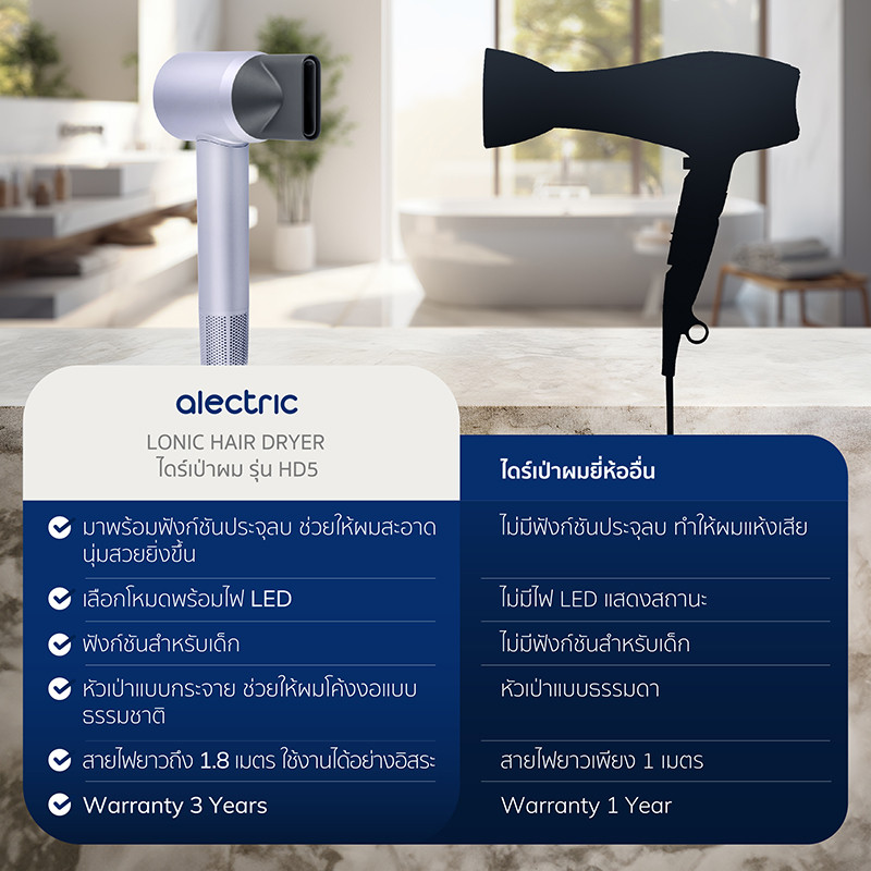 Alectric lonic Hair Dry ไดร์เป่าผมไอออนลบ รุ่น HD5 - รับประกัน 3 ปี