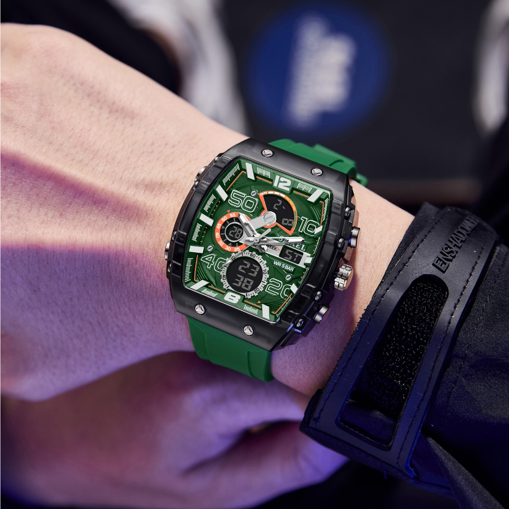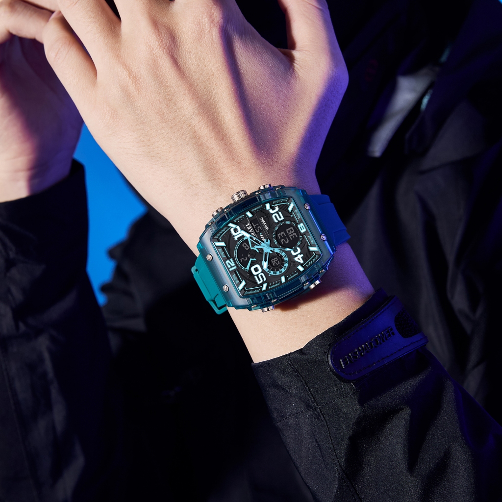 Smael กีฬากลางแจ้ง Dual Display Alarm นาฬิกาดิจิตอลสําหรับผู้ชายนาฬิกาข้อมือควอตซ์ Chronograph สายซิลิโคนชายนาฬิกา Tonneau Dial