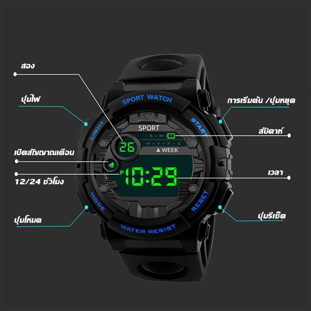 นาฬิกาข้อมือดิจิทัล หน้าปัดขนาดใหญ่ เรืองแสง แฟชั่นสําหรับผู้ชาย เหมาะกับการเล่นกีฬากลางแจ้ง ด้วยฟังก์ชั่นวันและเวลา
