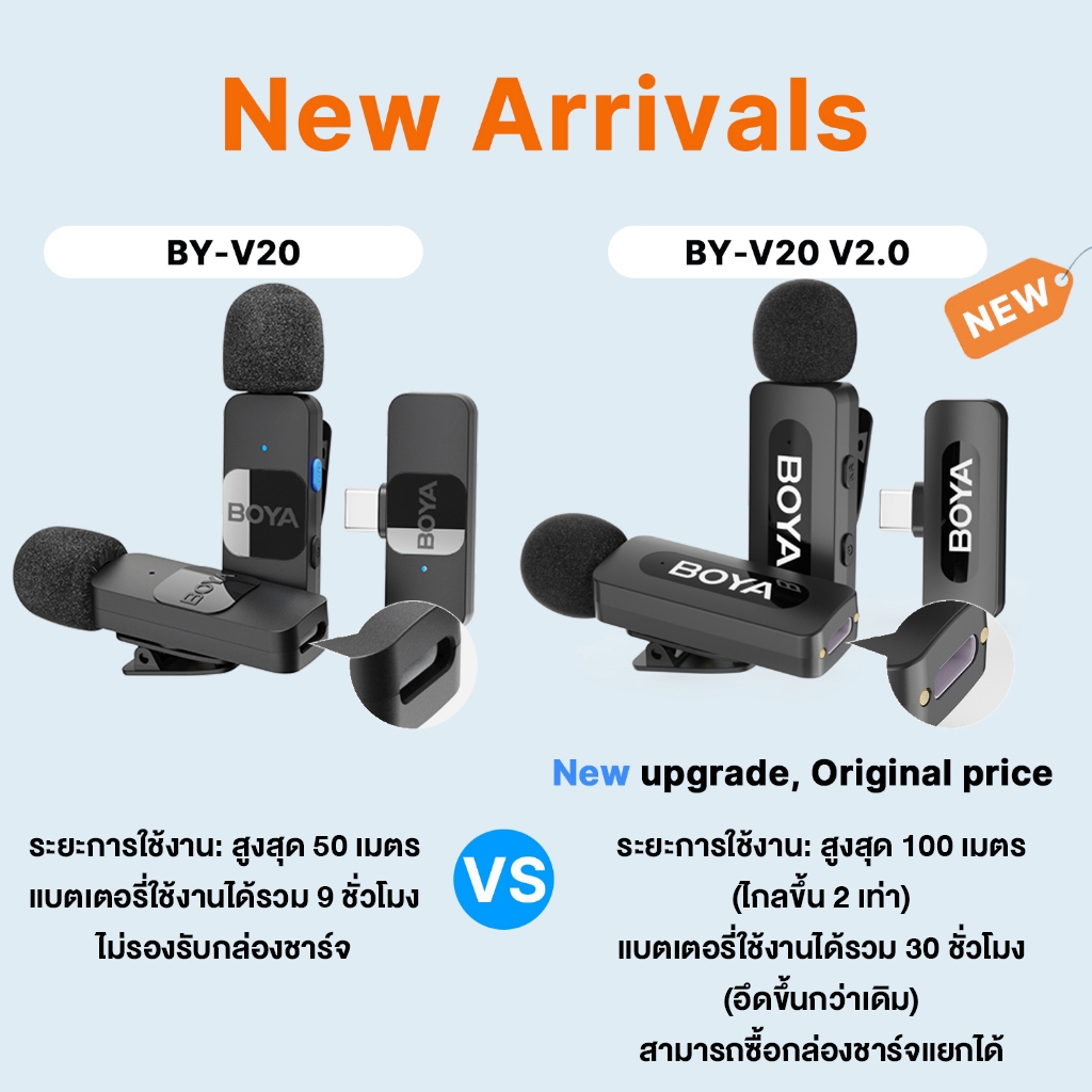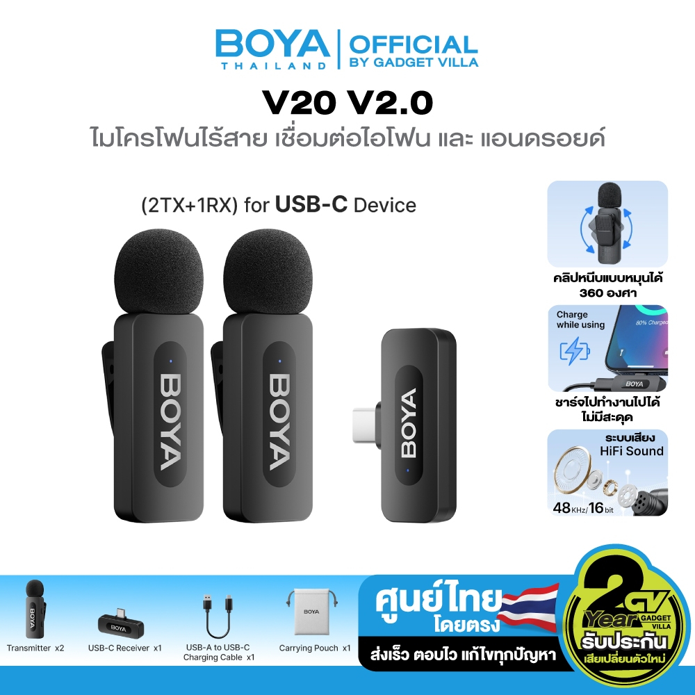 BOYA รุ่น BY-V10/V20 ไมค์ไร้สาย ตัดเสียงรบกวน ไมค์ไลฟ์สด ไมค์อัดเสียง สำหรับสมาร์ทโฟน iPhone/Android