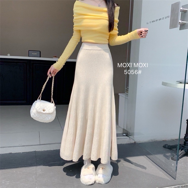 Lady_jeans#5056(H)กระโปรงยาวทรงย้วยหางปลา ผ้าไหมพรหม สวยมากรุ่นนี้