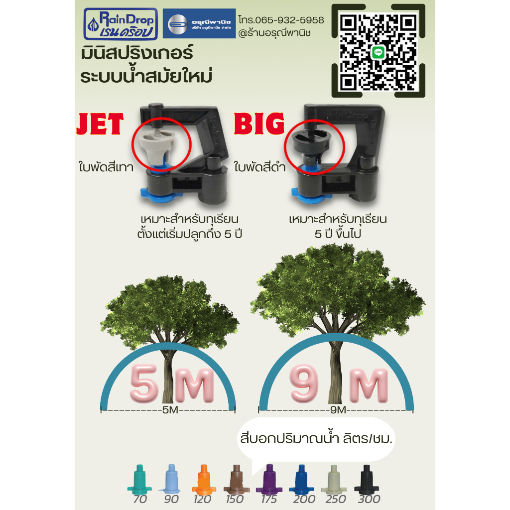 [แพ็กละ 10 ชุด] มินิสปริงเกอร์เรนดรอป RAINDROP รุ่น JET 120, 200, 250, 300 ลิตร หัวเหวี่ยง พร้อมฝาครอบเกลียวใน 3/4"x1/2"