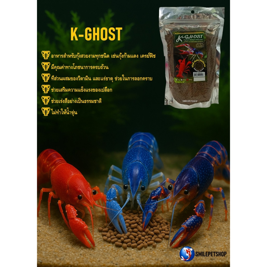 K-Ghost 500 g. (อาหารสำหรับกุ้งสวยงาม กุ้งก้ามแดง โปรตีนสูง ช่วยเสริมความแข็งแรงของเปลือก เร่งสีอย่างเป็นธรรมชาติ )