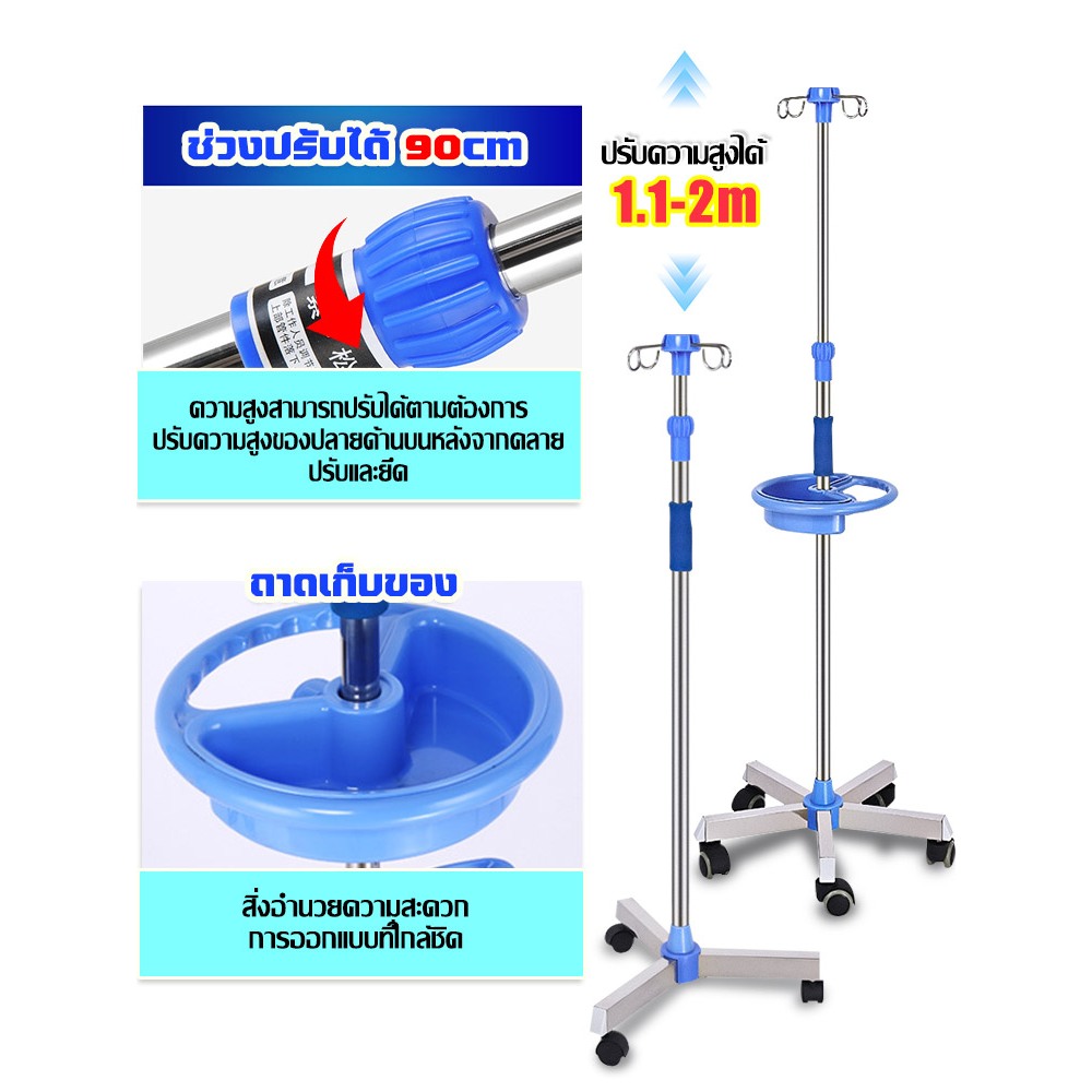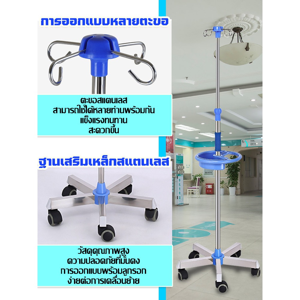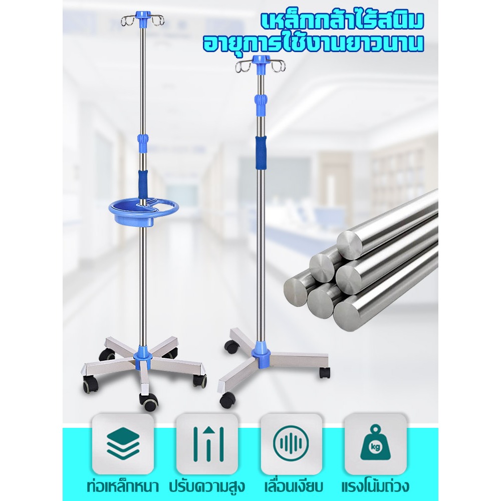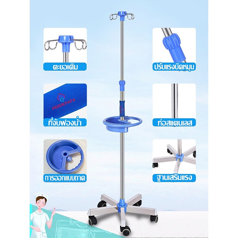 PERDKPAPA เสาแขวนน้ำเกลือ เสา แบบมือจับวางของได้ น้ำเกลือ เสาน้ำเกลือ สแตนเลส มาตรฐานโรงพยาบาล เสาน้ำเกลือมีล้อ