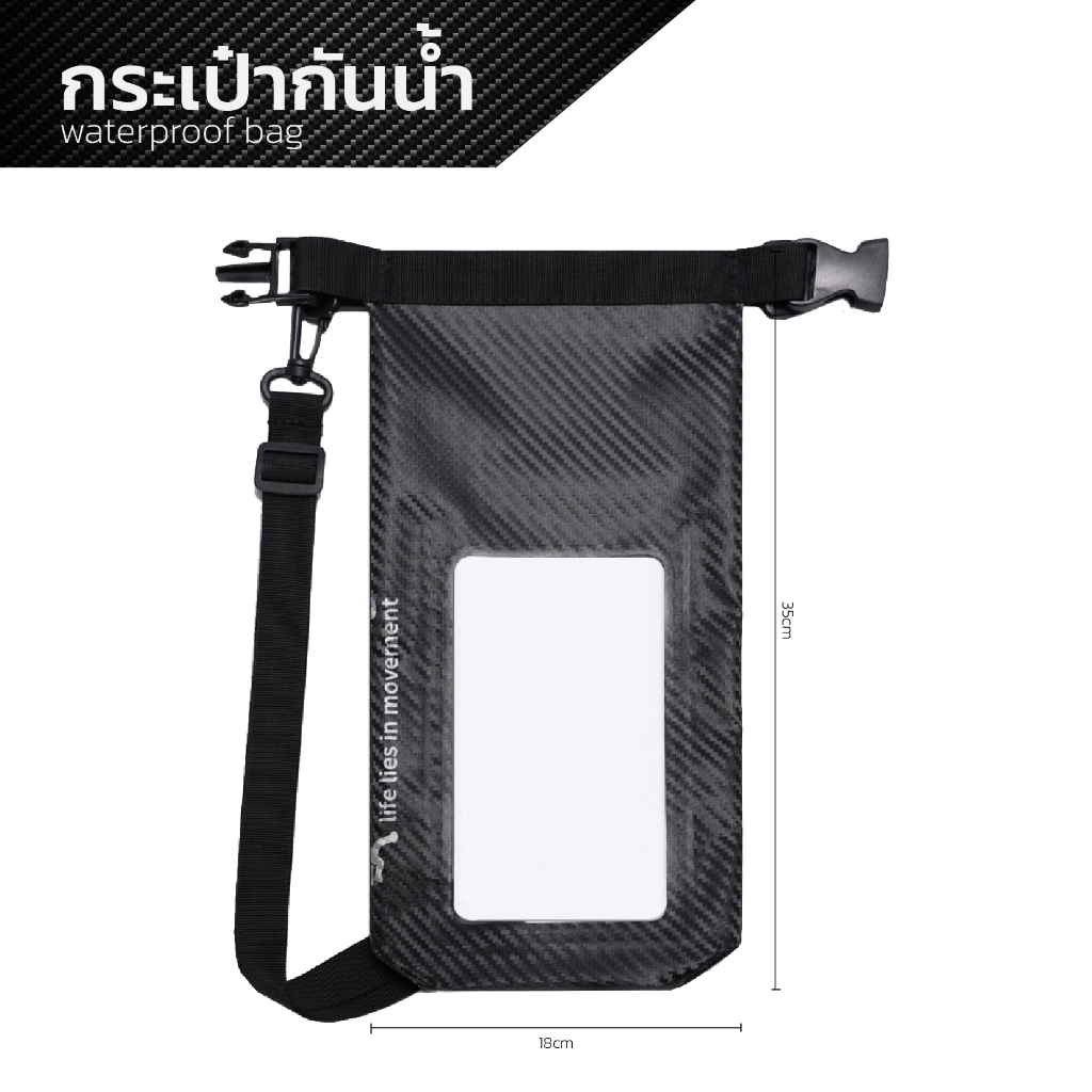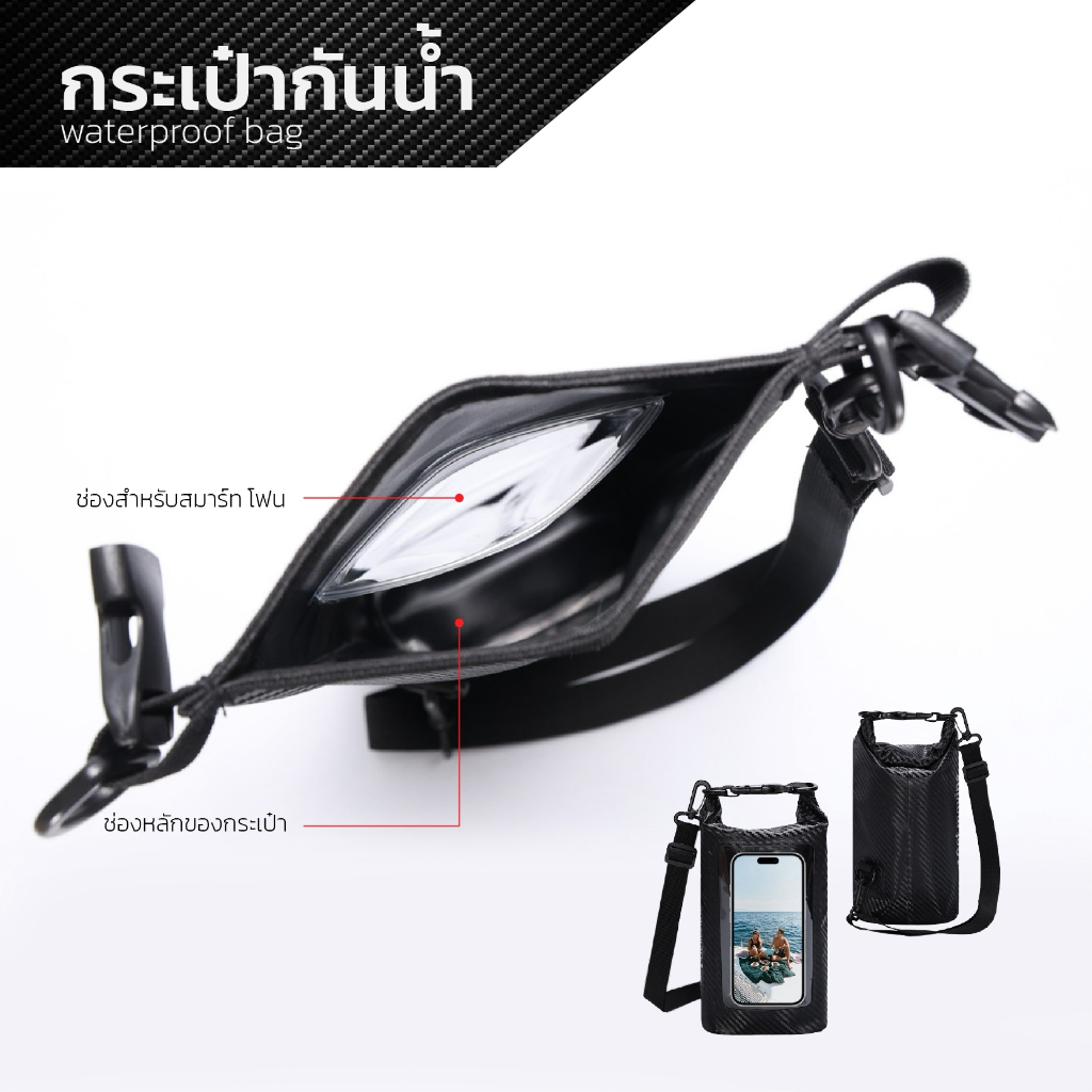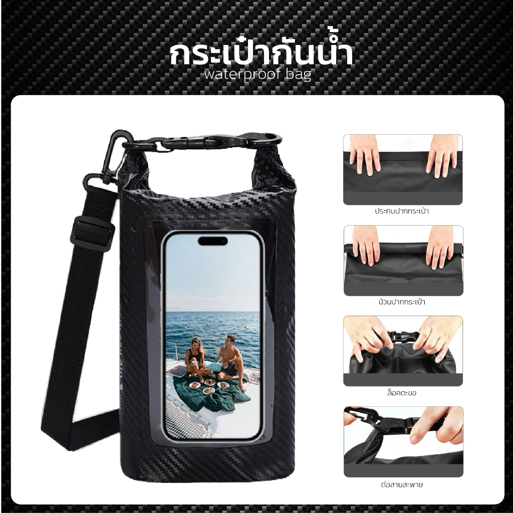 กระเป๋ากันน้ำแบบพกพา 2 in1 waterproofbagใส่โทรศัพท์สัมผัสได้ ขนาด- 3L,5L ลายคาร์บอน ด้านใน2ช่อง 6สี