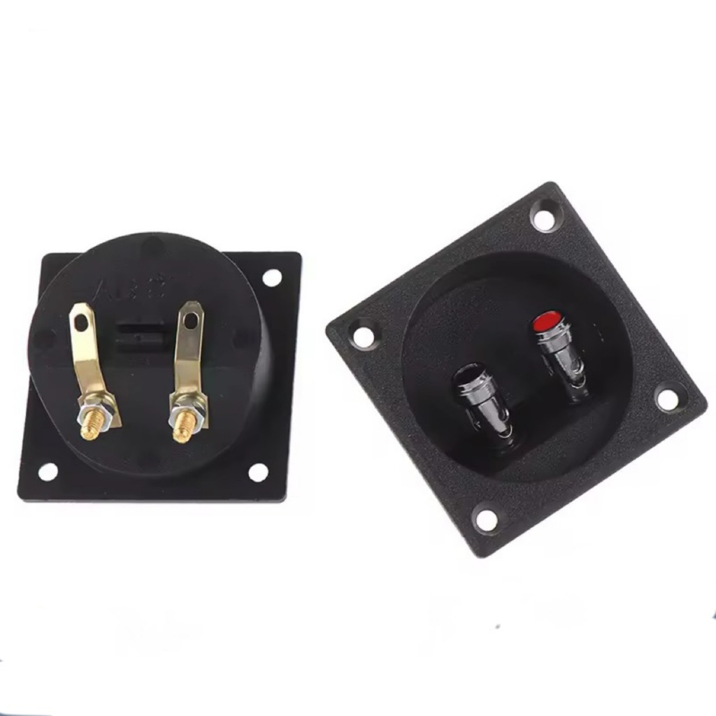 ราคาต่อ1อัน แท็บลำโพงติดตู้ขนาดเล็ก ไบดิ้งบอร์ดแบบเหลี่ยม ชนิดกดล็อกสาย ขนาด 57 mm เส้นผ่านศูนย์กลางรูที่เจาะ 49 mm