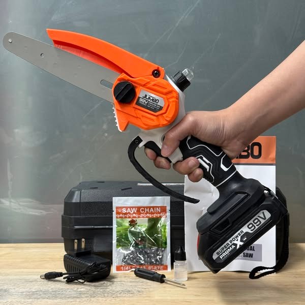 เลื่อยโซ่ไฟฟ้าไร้สาย JUMBO ขนาด 6 นิ้ว ความเร็วรอบ 2200 แบต 99V เลื่อย เลื่อยไฟฟ้า อุปกรณ์ครบกล่อง ส่งฟรี
