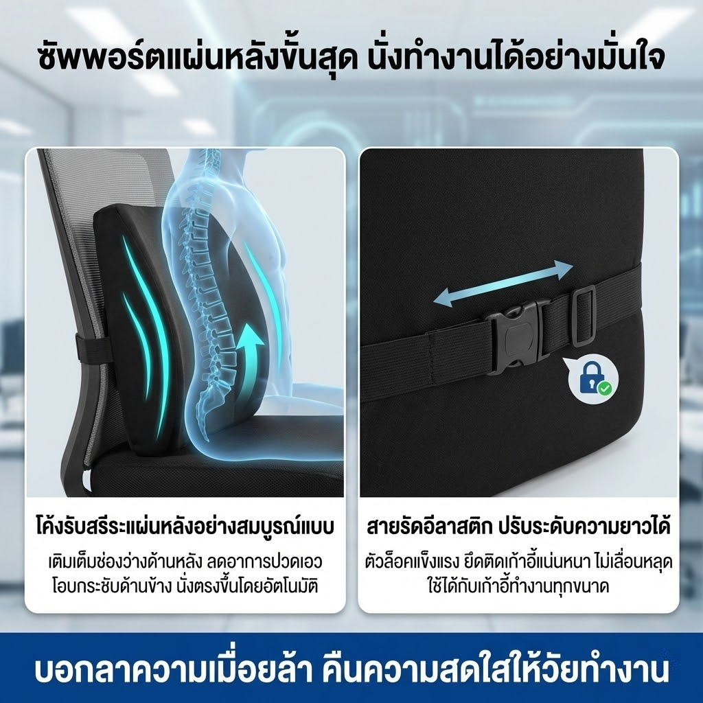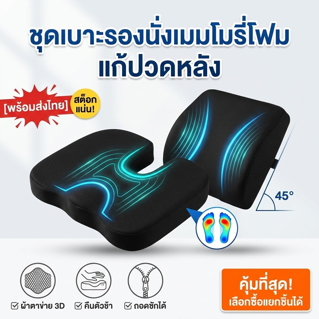 เบาะรองนั่งเบาะรองหลังเบาะรองเก้าอี้ลดอาการปวดเมื่อยเมมโมรี่โฟมแท้คลายความกดดัน