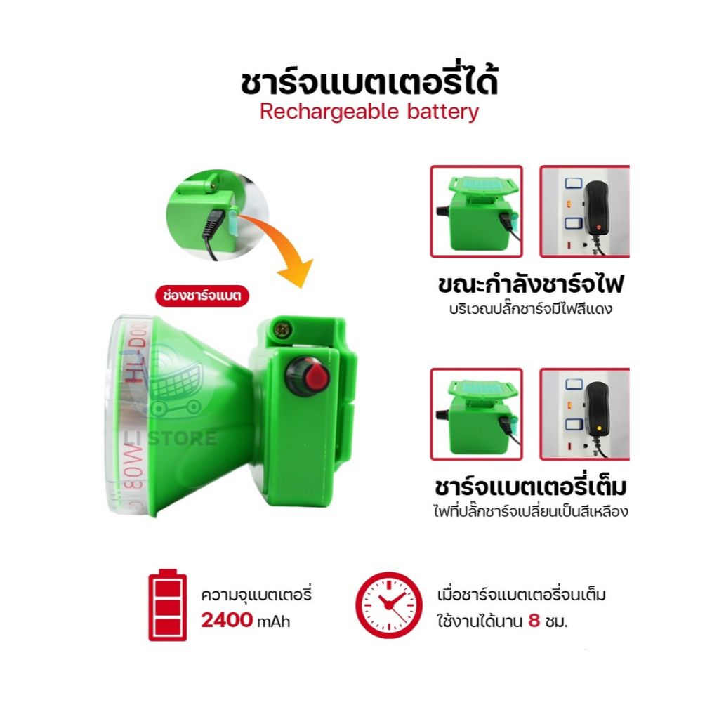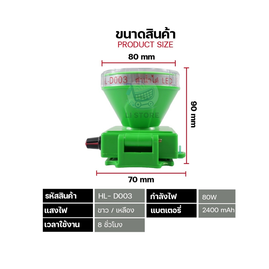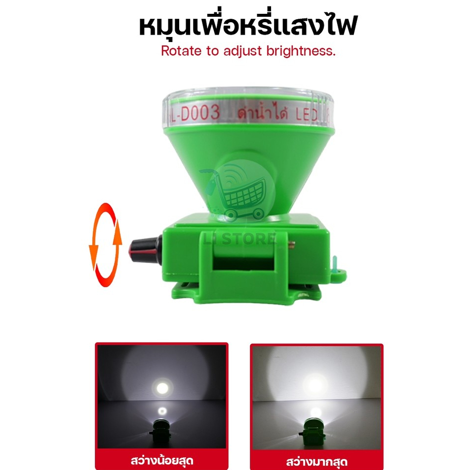 HL-D003 ไฟฉายคาดหัว ตรานก ดำน้ำลึก 30 เมตร ไฟส่องกบ ไฟฉายเดินป่า แบบชาร์จแบต ไฟดำน้ำ LED