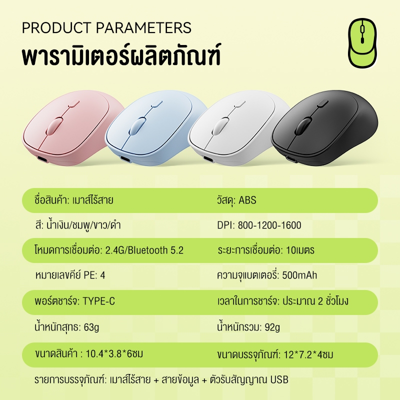 OLYPS เมาส์ไร้สาย Bluetooth 5.2 พร้อมตัวรับสัญญาณ USB 3 ระดับ DPI สําหรับแล็ปท็อป PC Mac Wireless Gaming Mouse