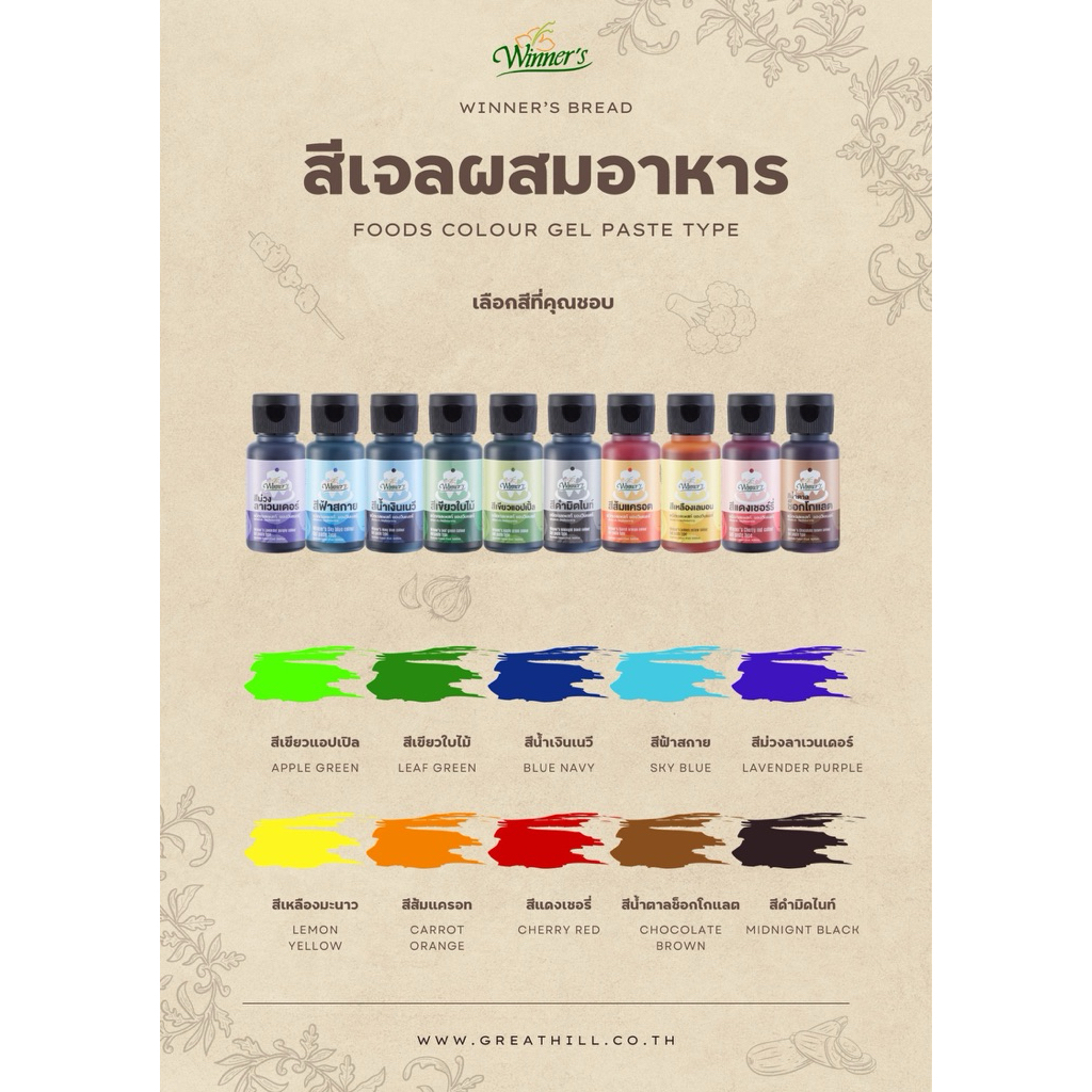 สีผสมอาหาร สีเจลผสมอาหาร วินเนอร์ 30ml (12สี) สีเจลผสมอาหาร สีผสมเค้ก