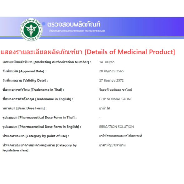 [ยกลัง10 ขวด] น้ำเกลือ GHP NORMAL SALINE ขวดดัมเบล ขนาด 1000ML. EXP. 01/12/2030