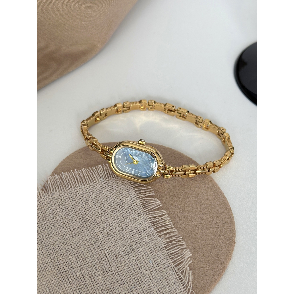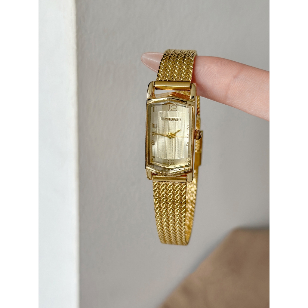 Vintage Gold นาฬิกาผู้หญิงคอลเลกชัน Retro สี่เหลี่ยมผืนผ้ารูปไข่ Dial Luxury สร้อยข้อมือโลหะนาฬิกาข้อมือควอตซ์ Elegant Dress นาฬิกา