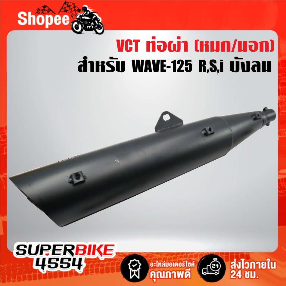 VCT ท่อผ่าหมก/มอก สีดำ สำหรับ WAVE-125 R,S,i บังลม [มอก.341-2543 เลขที่ ท4499-67/341]