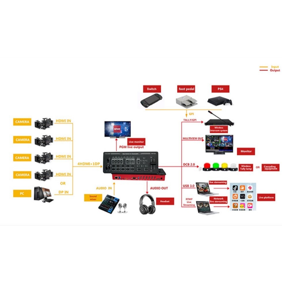 DeviceWell HDS7305 Video Switche เครื่องสลับสัญญาณภาพ 5-CH Video Switcher 4 * HDMI 1 * DP