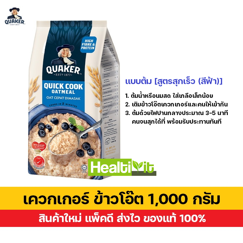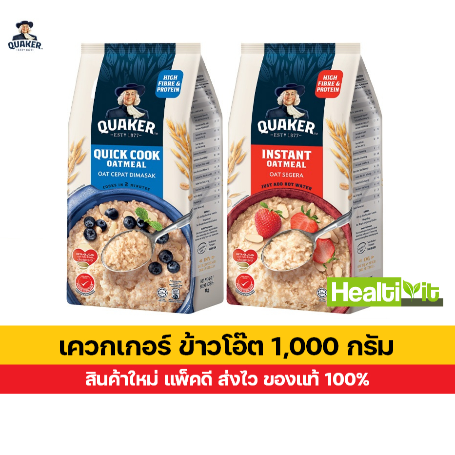 Quaker ข้าวโอ๊ต เควกเกอร์ ถุงใหญ่ 1000 กรัม สินค้าใหม่ แพ็คดี ส่งไว (เลือกสูตรได้) สูตรสุกเร็ว / สูตรปรุงสำเร็จ