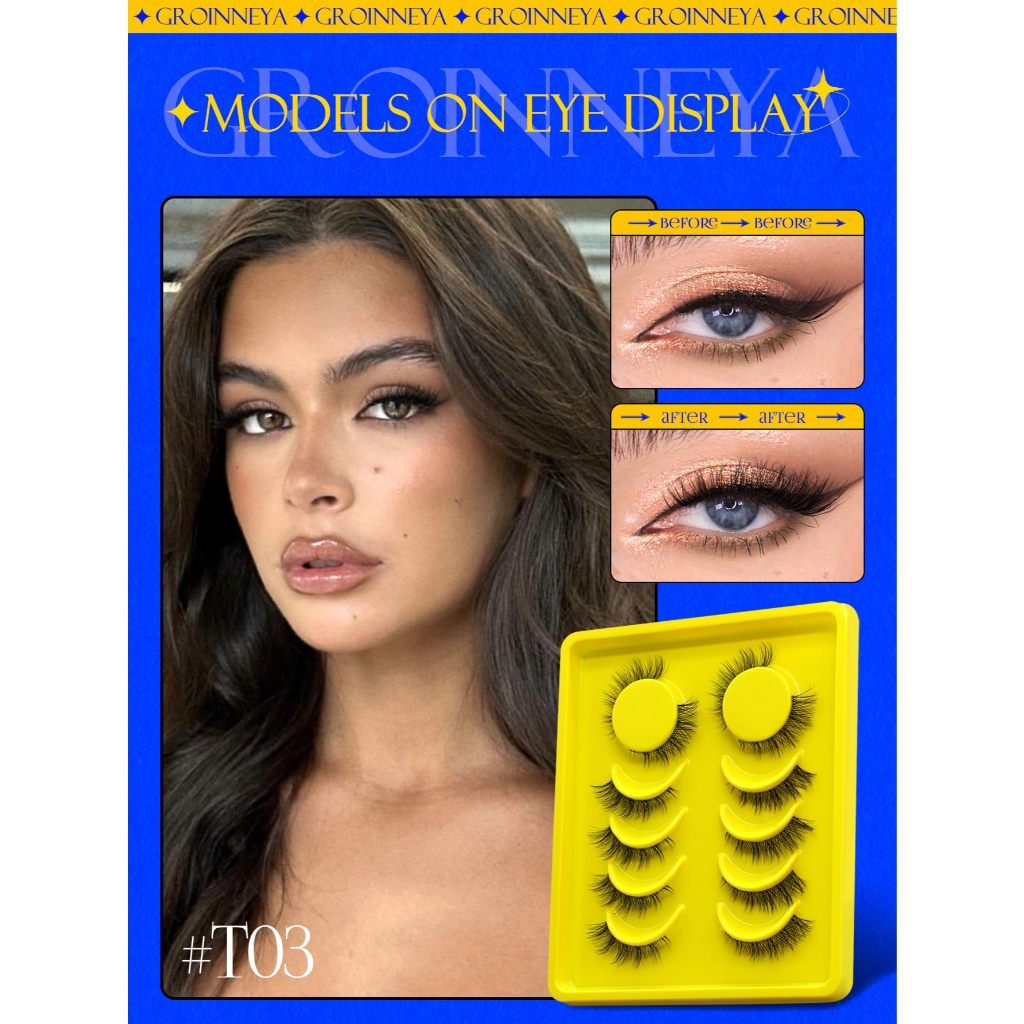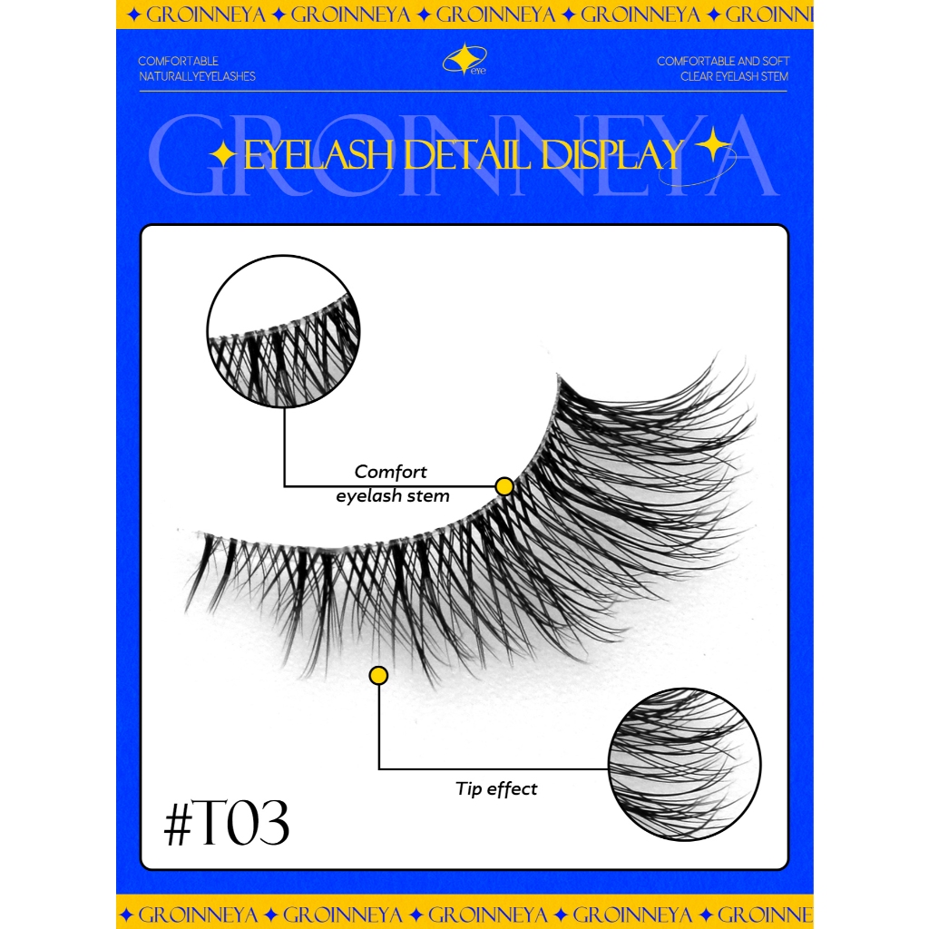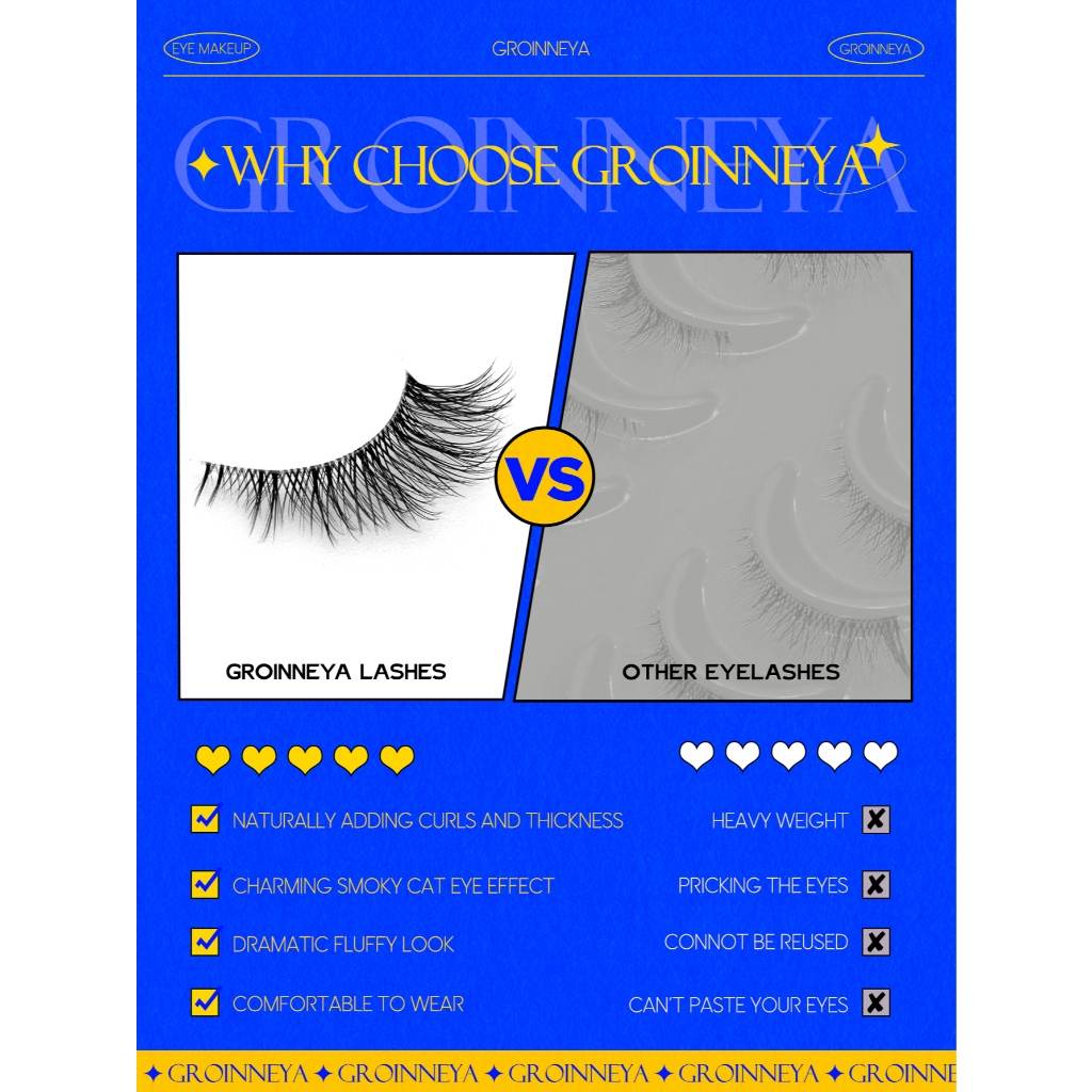 Groinneyal ขนตาแคทอาย 3 มิติ ขนตาธรรมชาติแบบนุ่ม ขนตาปลอมแบบมังงะ ขนตาปลอมแบบบาง แต่งหน้า