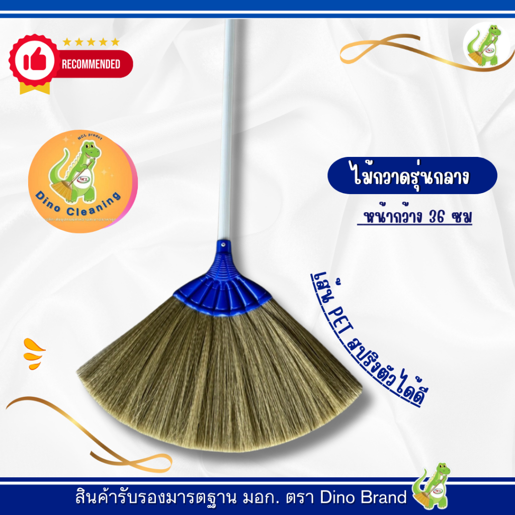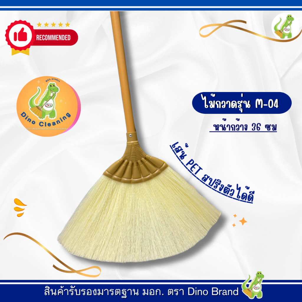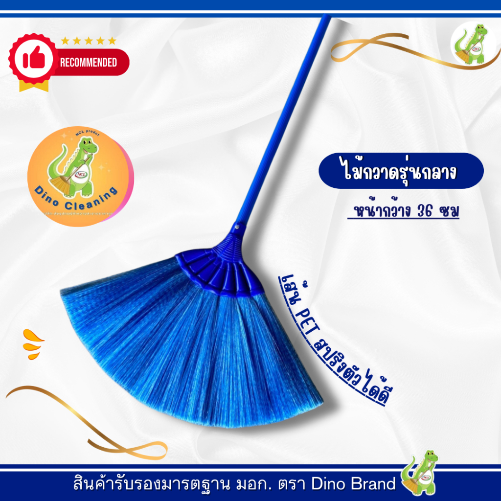 ไม้กวาดพลาสติก ขนาดกลาง (รุ่น M-04) ด้าม PVC อย่างดี ขนเเน่น กะทัดรัด ไม่หลุดง่าย Dino Brand