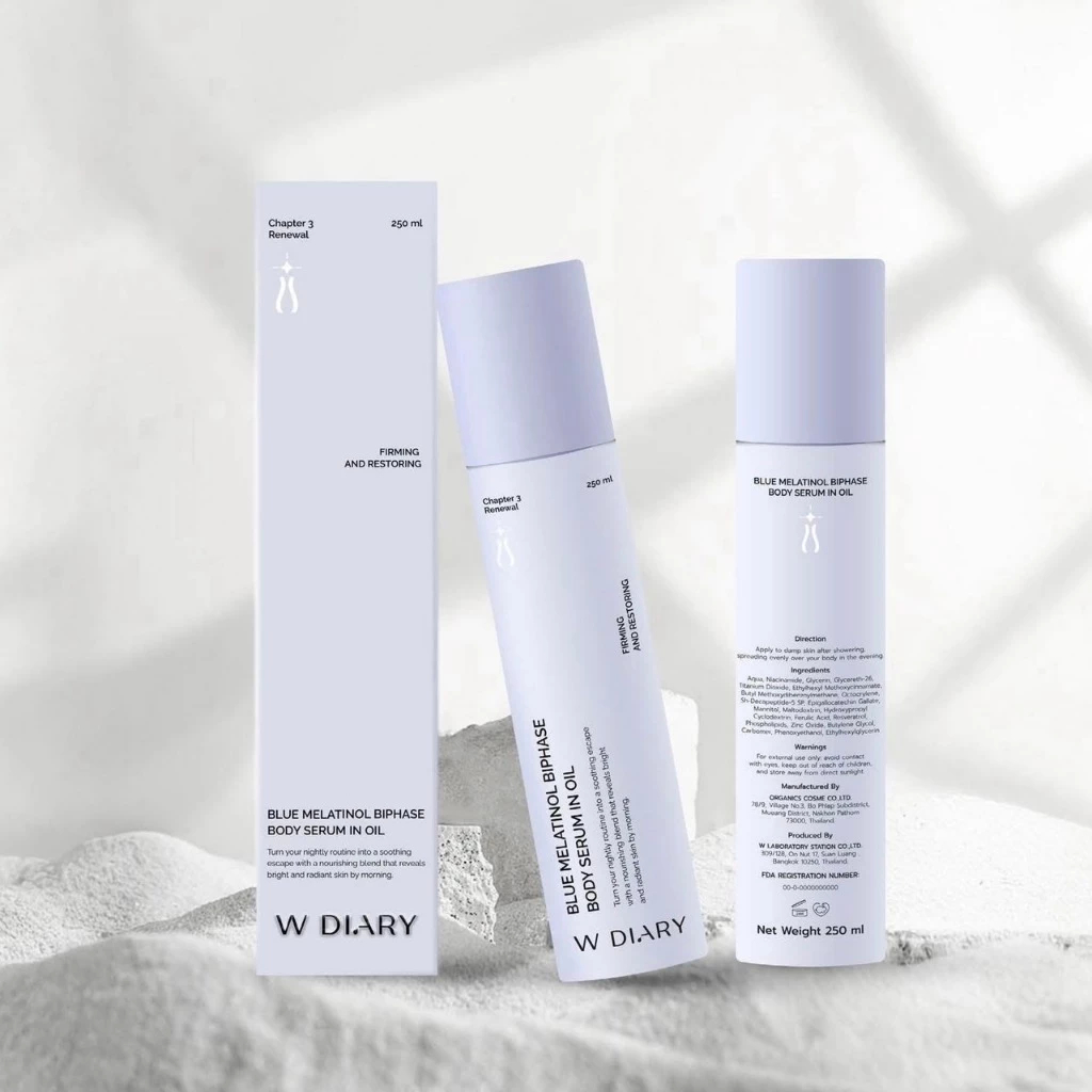 W Diary สูตรใหม่ Blue Melatinol Biphase Body Serum in Oil 250ml แพคเกจใหม่