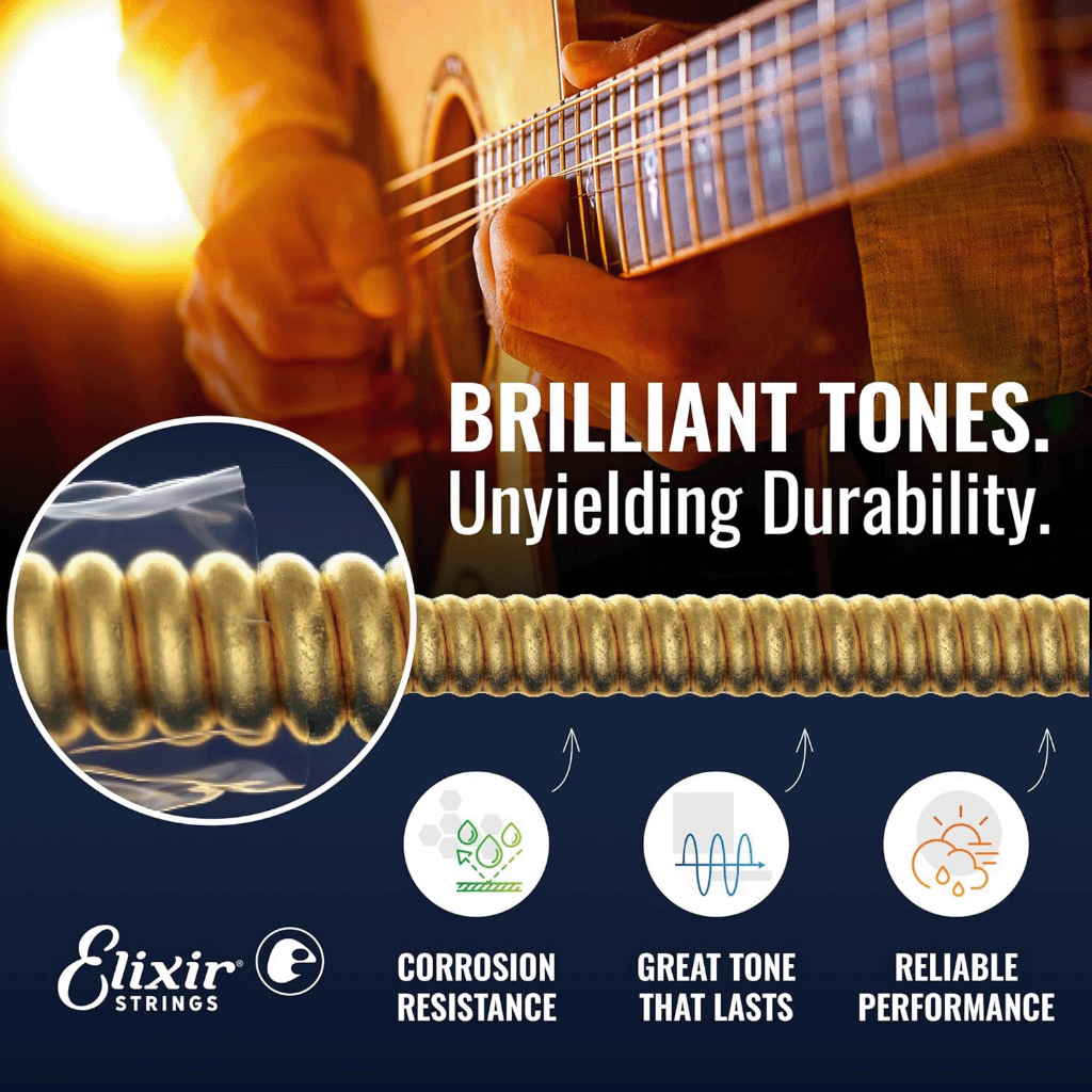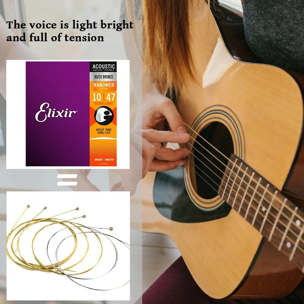 ELIXIR สายกีตาร์โปร่งเคลือบกันสนิมแบบครบชุด เบอร์ NANOWEB COATING / 80/20 BRONZE