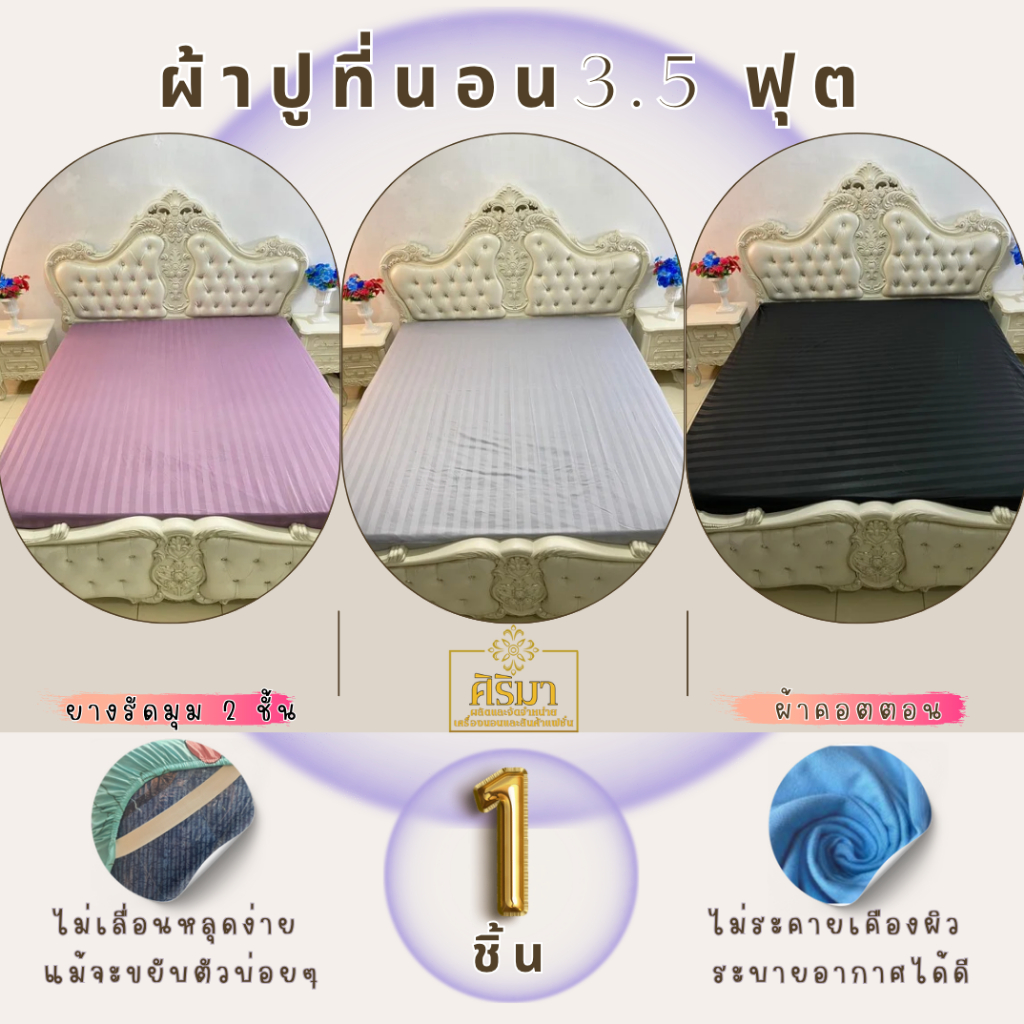 ผ้าปูที่นอน 1 ชิ้น 3.5 ฟุต ริ้วผ้าซาติน ให้ความรู้สึกนุ่มลื่น เย็นสบาย