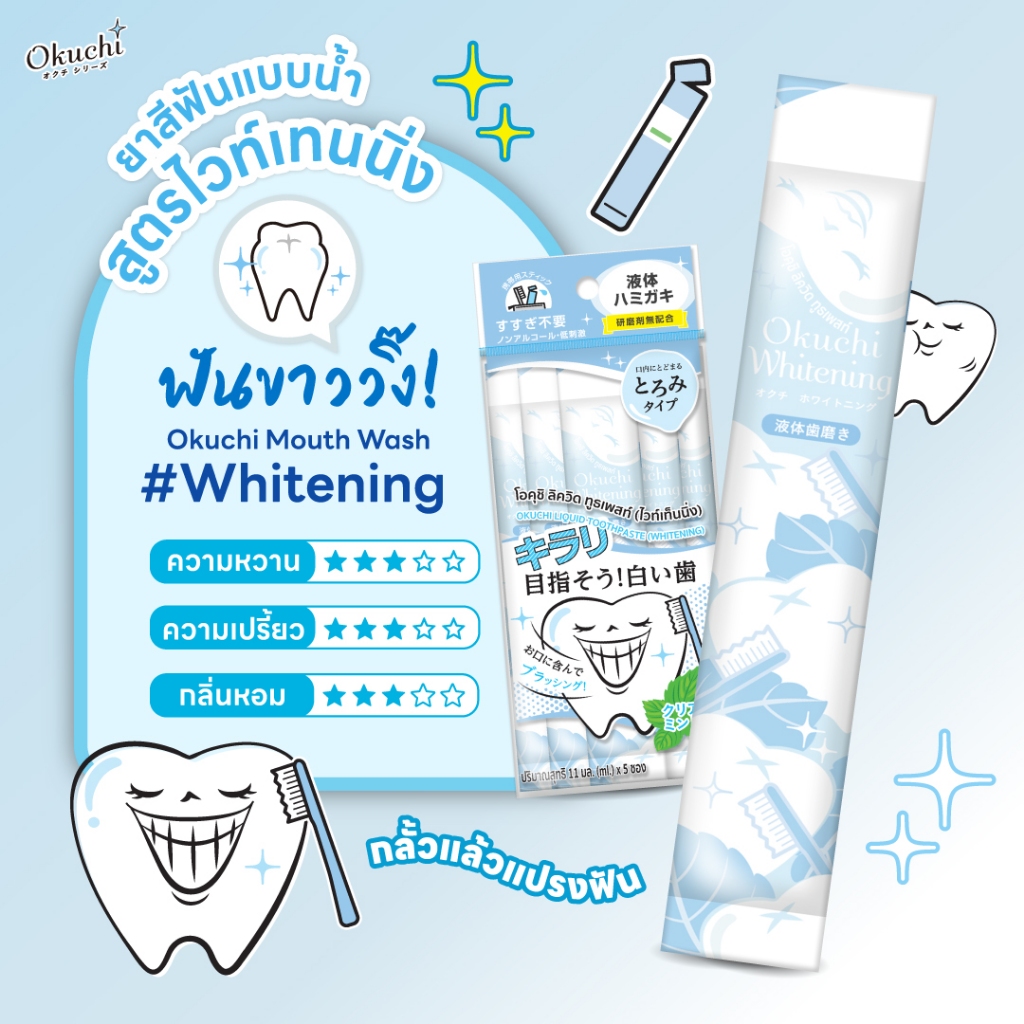 [ชุดสุดคุ้ม ยกลัง แพ็ค 22 ฟรี 2] Okuchi Mouthwash Whitenig โอคุจิ น้ำยาบ้วนปากไวท์เทนนิ่ง 11mL x 5