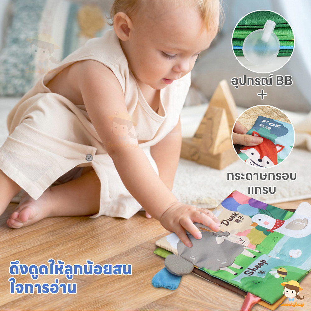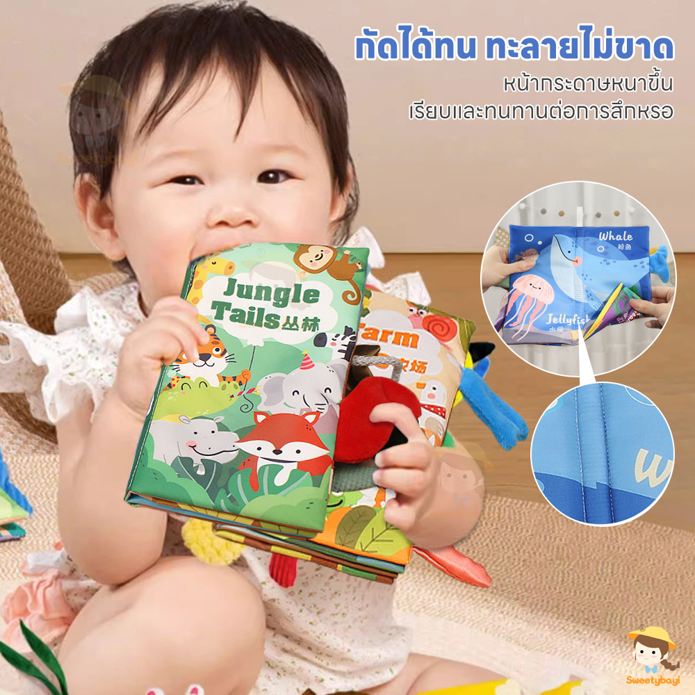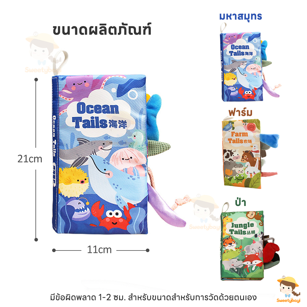 SWEETYBAYI หนังสือผ้าเสริมพัฒนาการเด็ก หนังสือเด็ก นิทานเด็ก หนังสือผ้า ลายการ์ตูน มีหาง- หนังสือผ้า