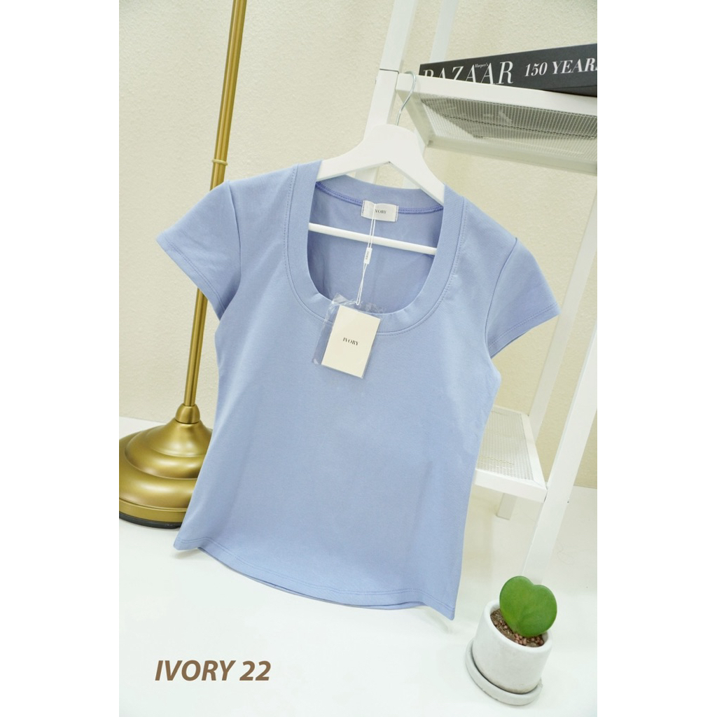 VV33 -IVORYเสื้อยืด คอยูกว้าง ผ้ายูนิโคล่า สวยมาก