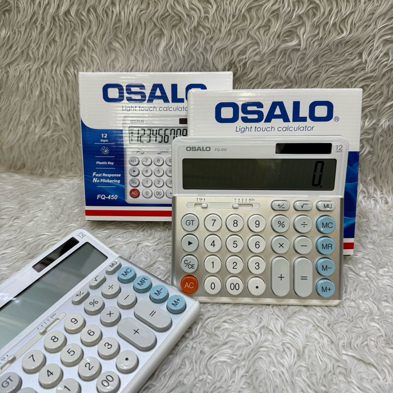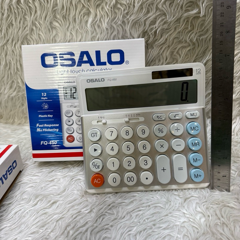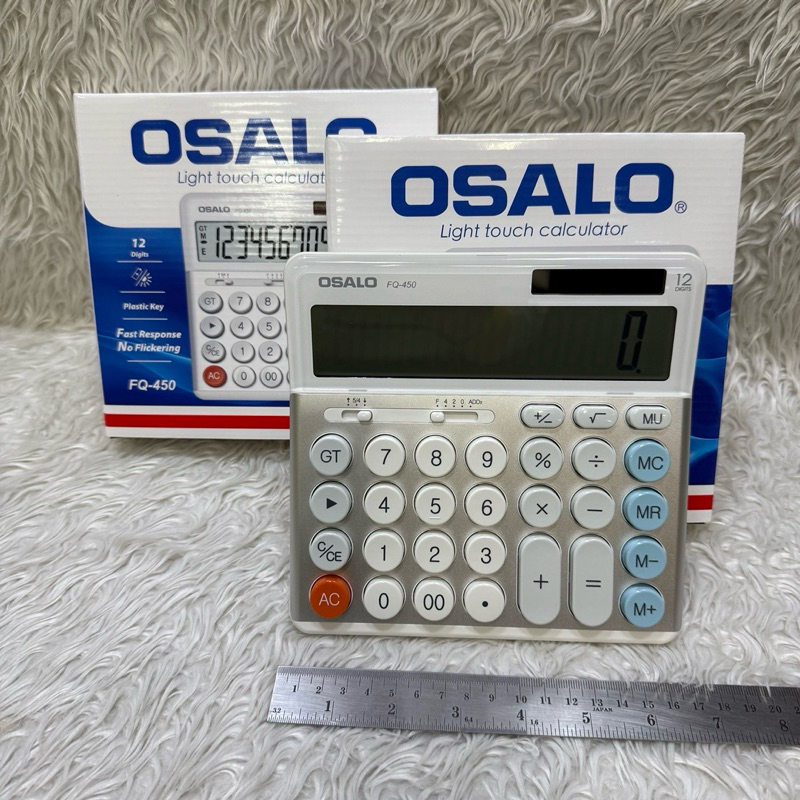 เครื่องคิดเลข OSALO FQ-450 ขนาด 17x16.5 cm. แนวนอน หน้าจอใหญ่พิเศษ ดีไซน์ สวย หรู หน้าจอ 12 หลัก ปุ่มใหญ่ กดง่าย