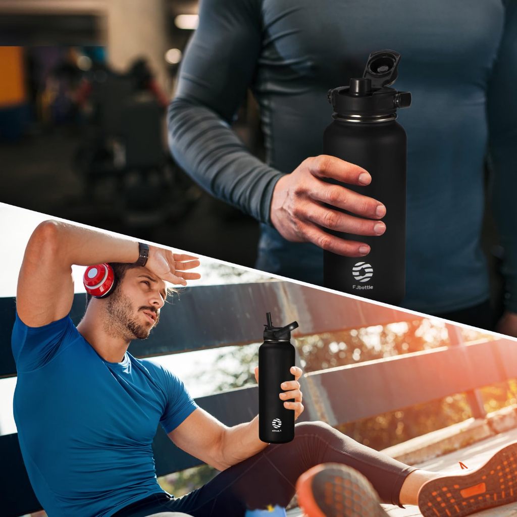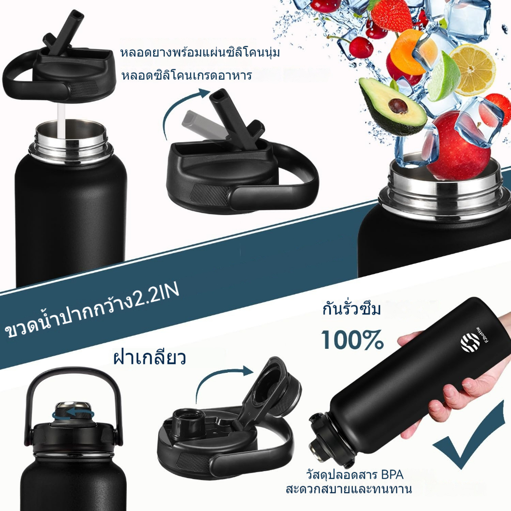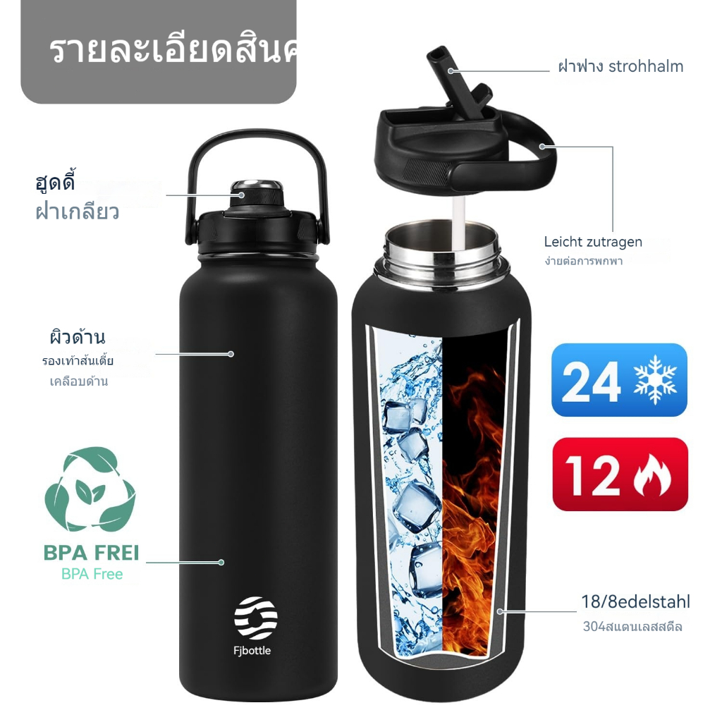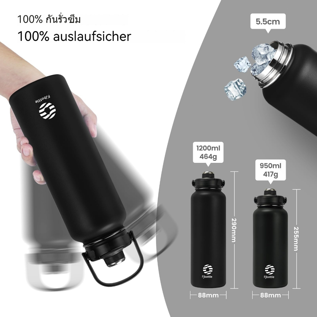 ขวดน้ำเก็บอุณหภูมิ FJbottle 1200ml พร้อมฝา 2 แบบ สแตนเลส 304 ขวดน้ำกีฬา เก็บความร้อนและความเย็น เหมาะสำหรับการเดินทางและ