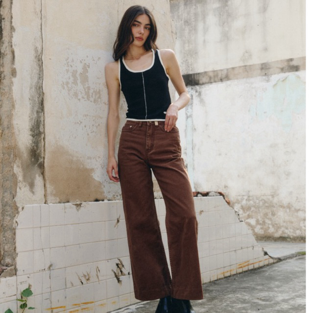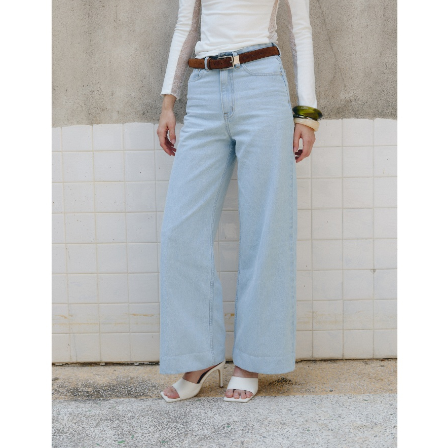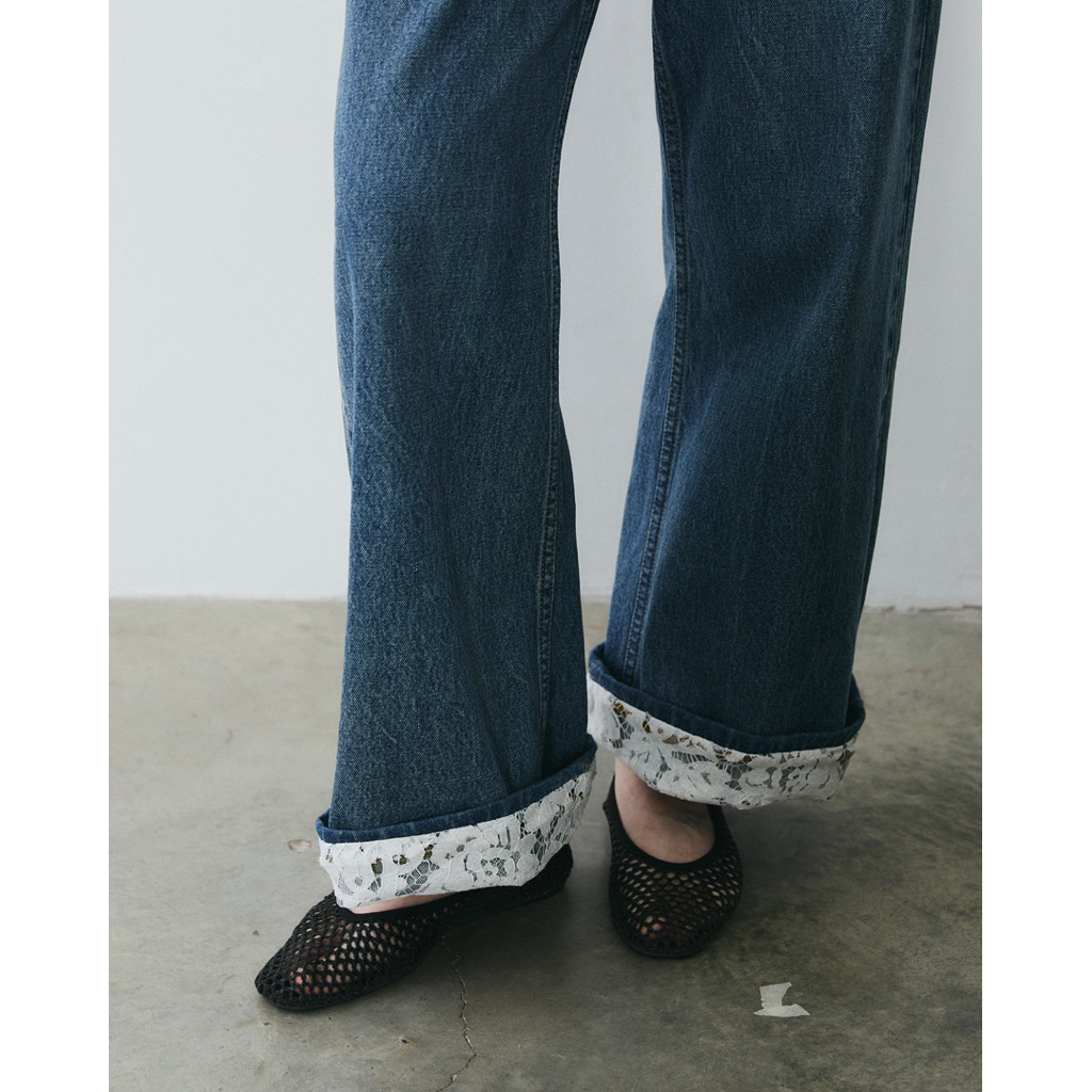 STUDIO UNKNOWN - Lace Straight Jeans กางเกงยีนส์ทรงกระบอกใหญ่ ตกแต่งดีเทลลูกไม้ปลายขา