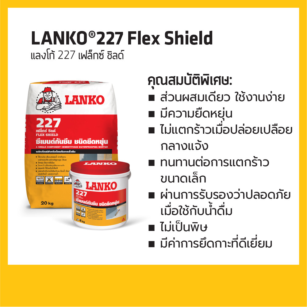 Lanko 227 Flex Shield ซีเมนต์ทากันซึม ชนิดยืดหยุ่น ส่วนผสมเดียว 4kg. 20kg.