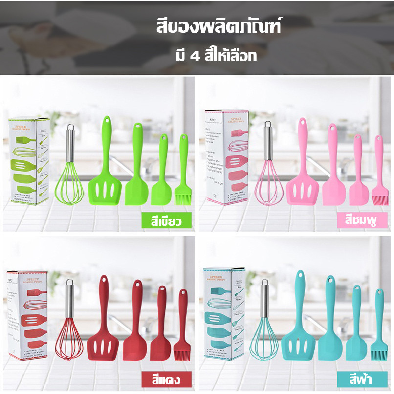 ชุดตะหลิว ไม้พาย ชุดครัว 5 ชิ้น ซิลิโคนชุดเครื่องครัว ทนความร้อนสูง ไม่ละลาย ทนความร้อน เครื่องครัว ทัพพี