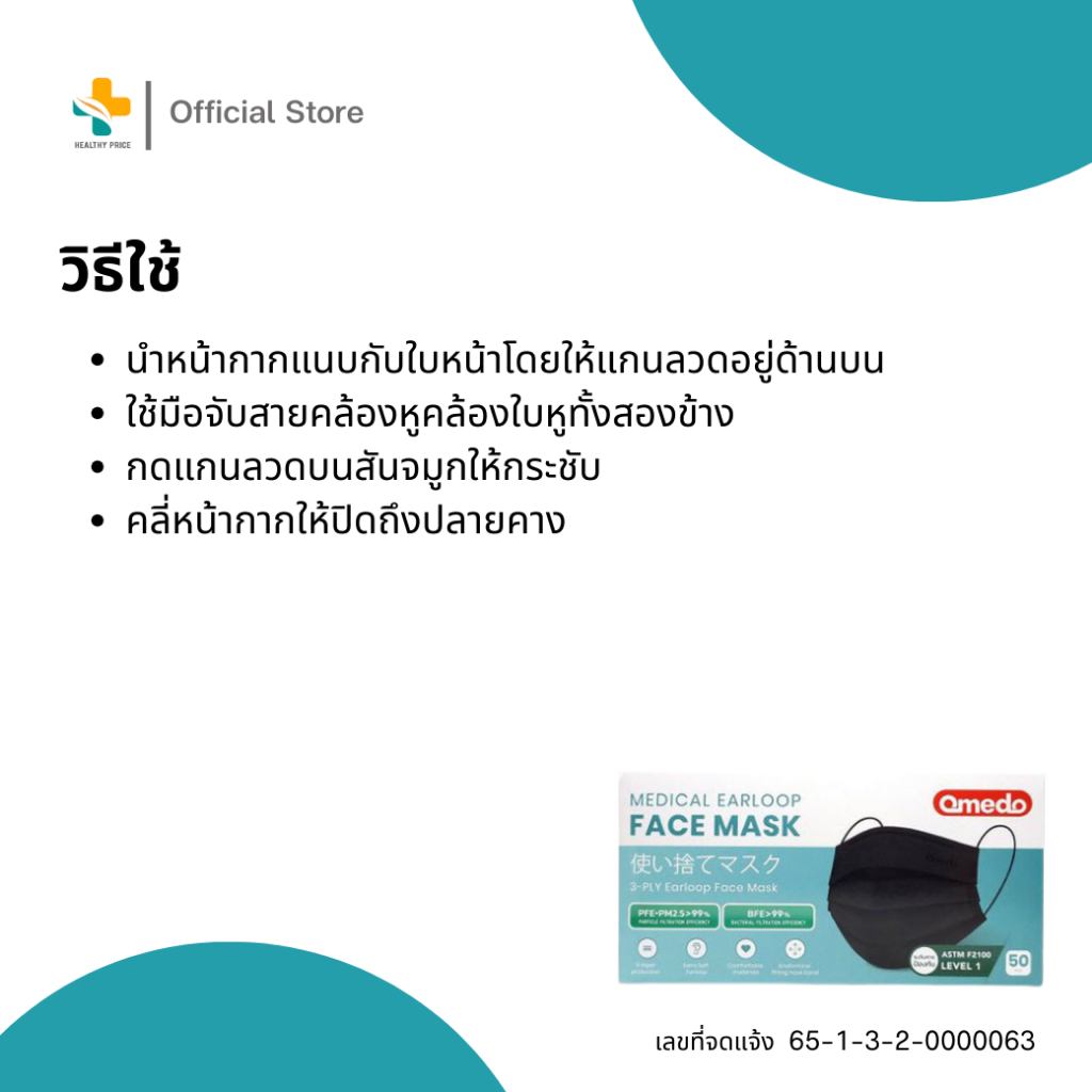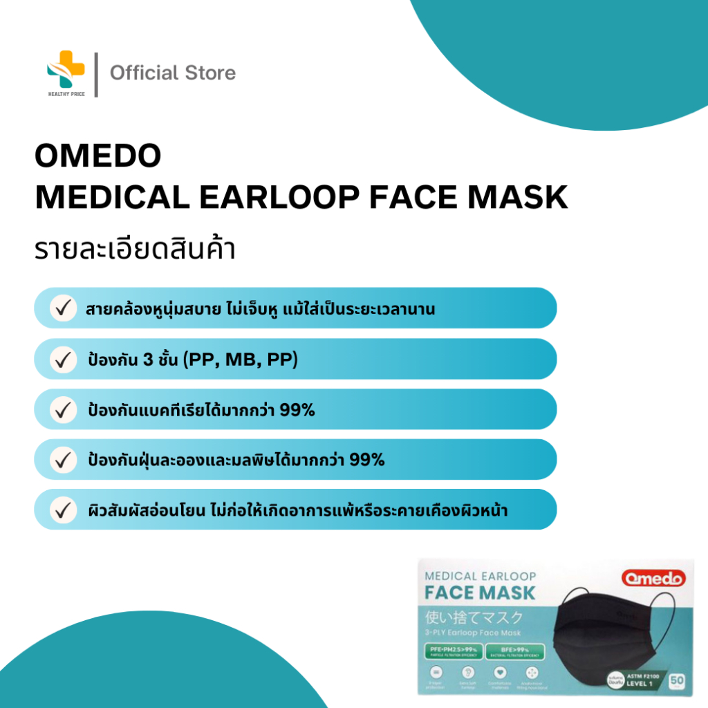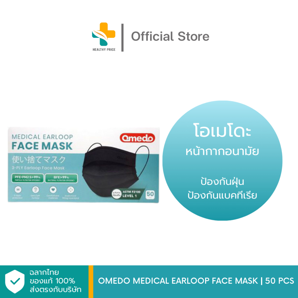 Omedo Medical Earloop Face Mask (50 ชิ้น) หน้ากากอนามัย ป้องกันฝุ่น ป้องกันแบคทีเรีย