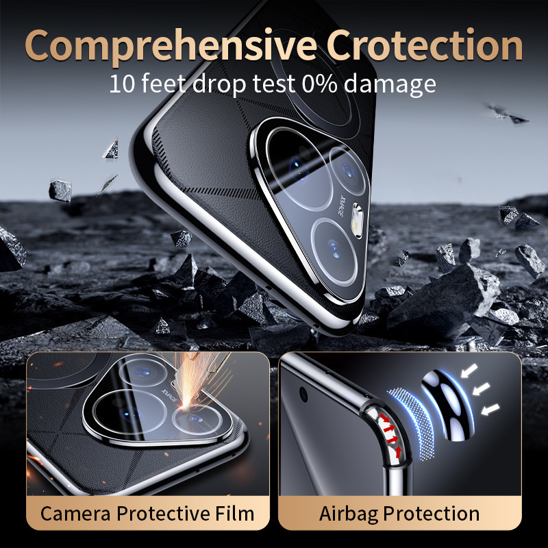 YOOVEI เคสหนังสําหรับ Huawei Pura 70 Pro+ พร้อมขาตั้งแม่เหล็กรองรับชาร์จไร้สายกันกระแทกเคสป้องกันโทรศัพท์ Huawei Pura 70 สีเขียวพิเศษ