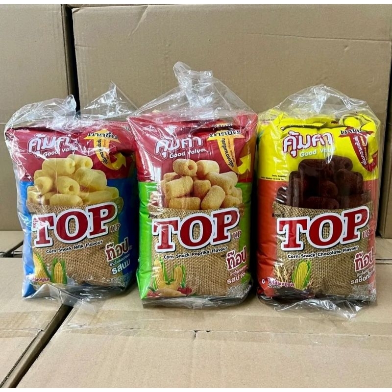 รวมขนม20บาท ข้าวเกรียบกุ้งฟูชิคละรส3แพ็ค+ข้าวโพดอบกรอบtopupคละรส3แพ็ค